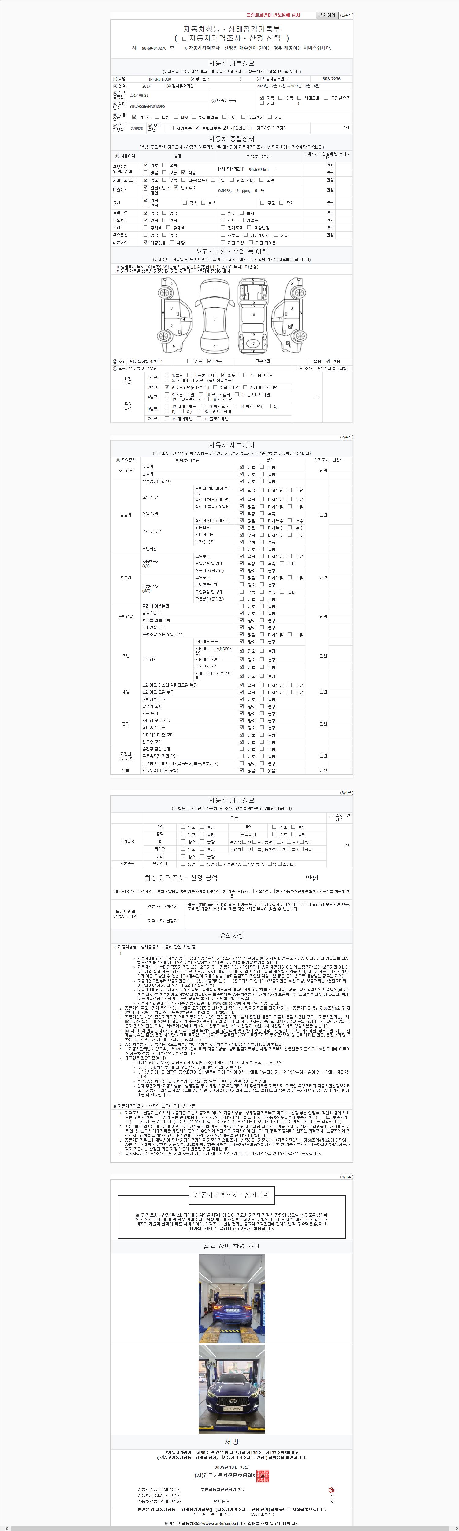 사고유무 성능기록부 참조 제시번호 제 2025235220 호