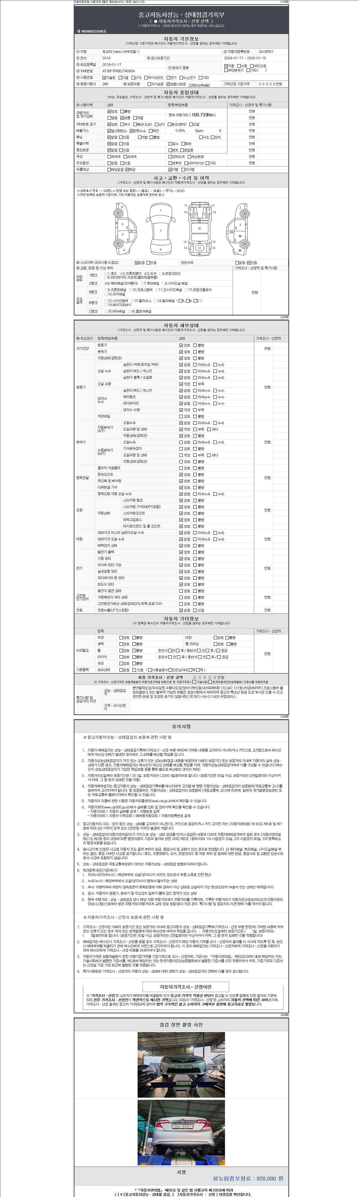 사고유무 성능기록부 참조 제시번호 제 2147483647 호