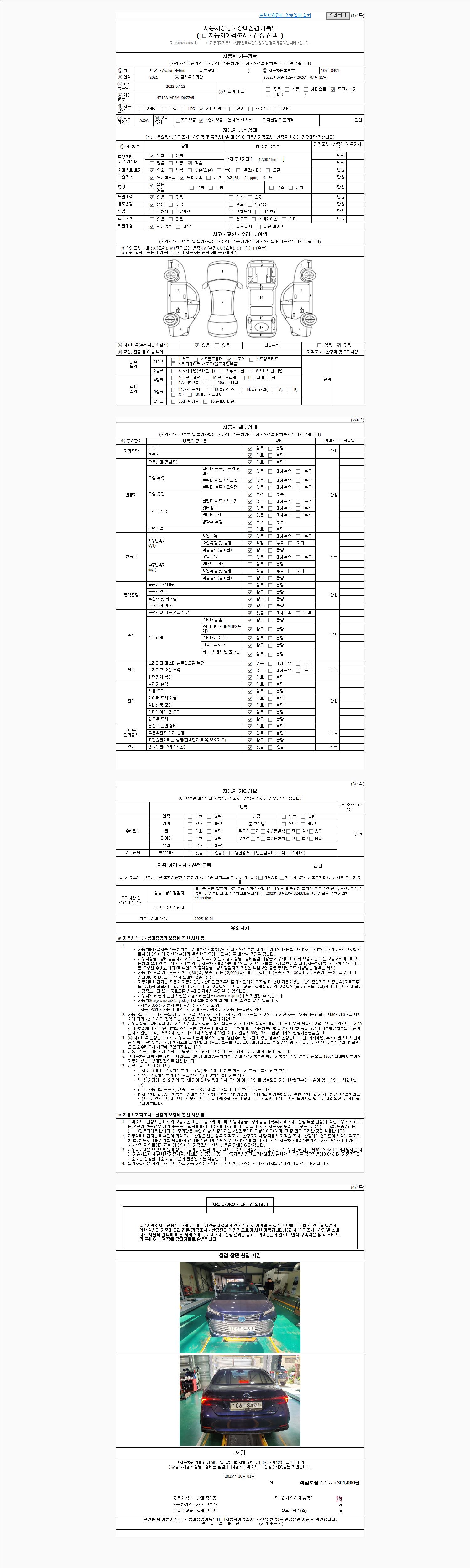 사고유무 성능기록부 참조 제시번호 제 2025028920 호