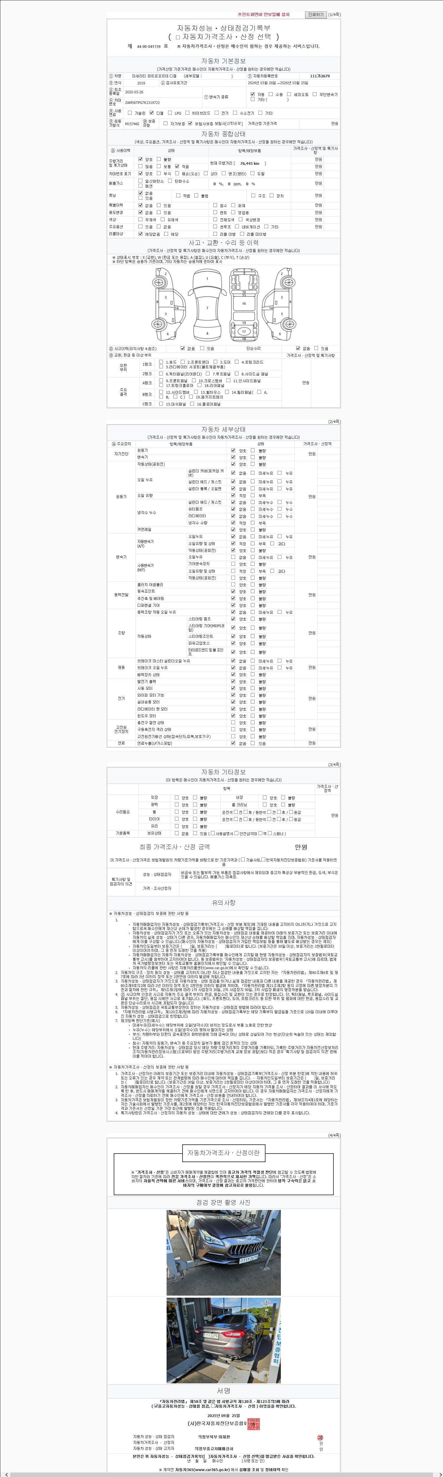 사고유무 성능기록부 참조 제시번호 제 2025180025 호