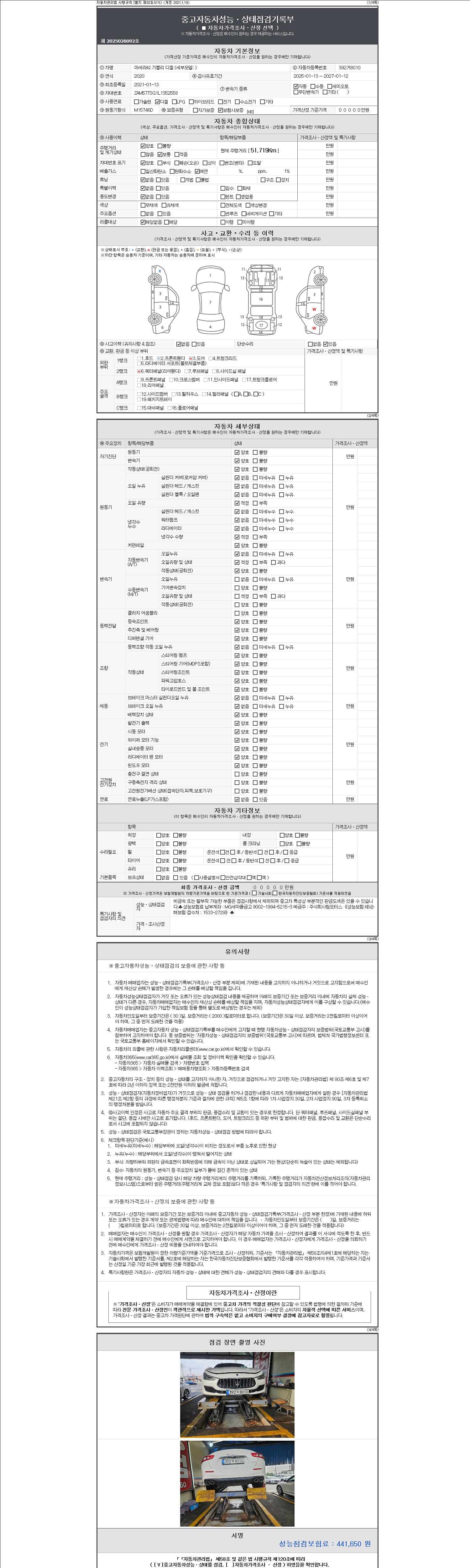 ※ 성능기록부가 안보일 경우 딜러에게 문의바랍니다.