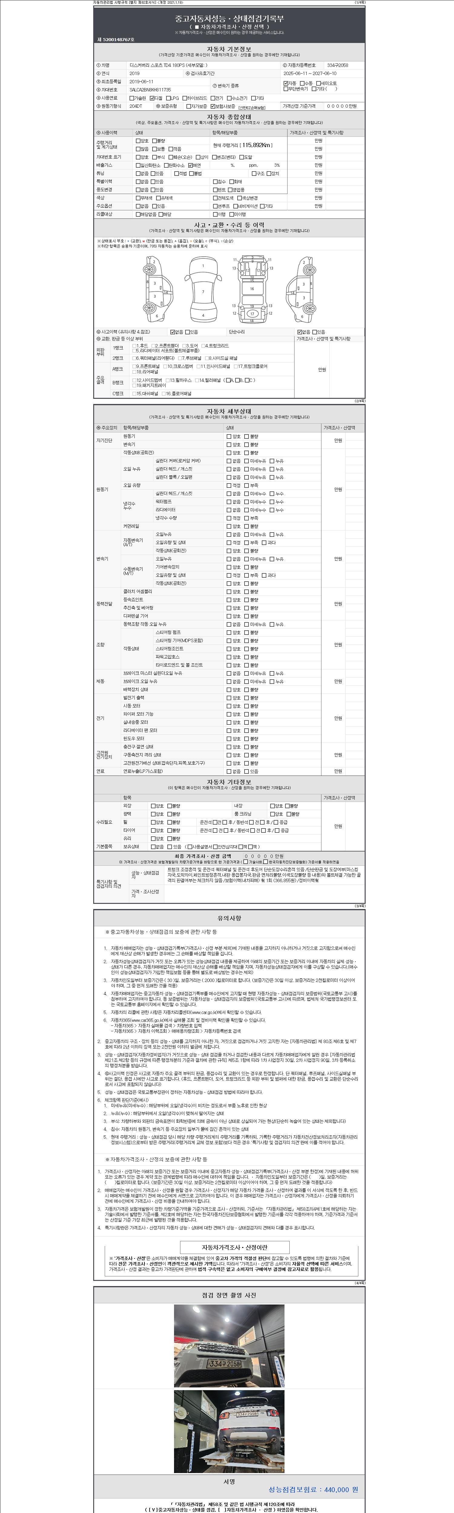 2. 차량 등록증이나 성능점검지 등을 상담자에게 요청및 확인하시고 사전에 미리 점검 하시기를 권유드립니다.