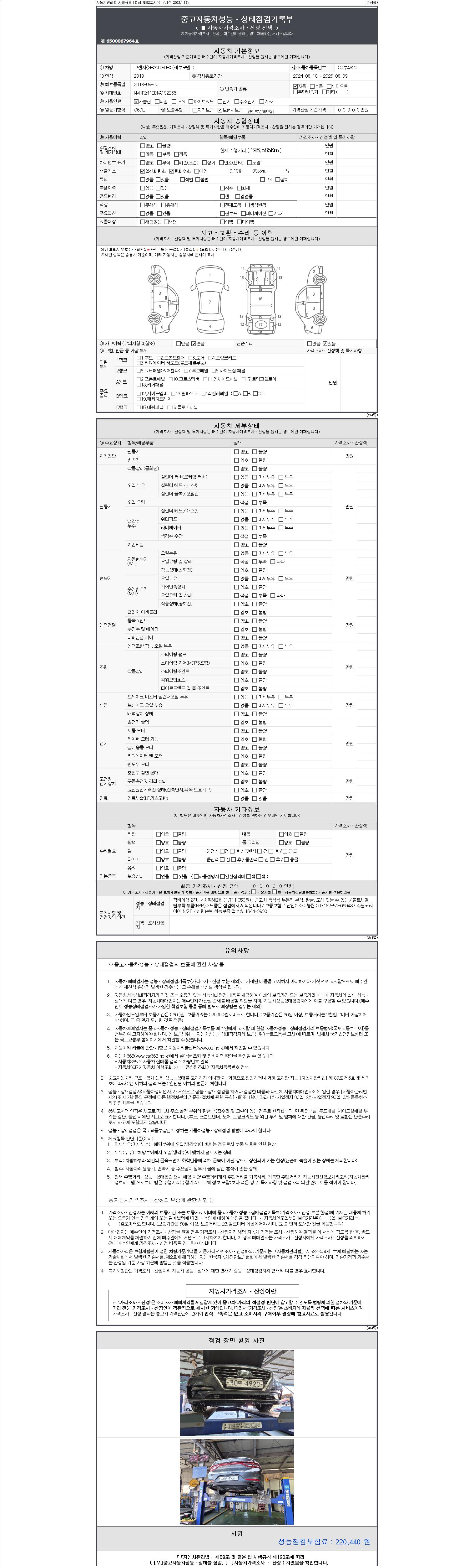 ※ 성능기록부가 안보일 경우 딜러에게 문의바랍니다.