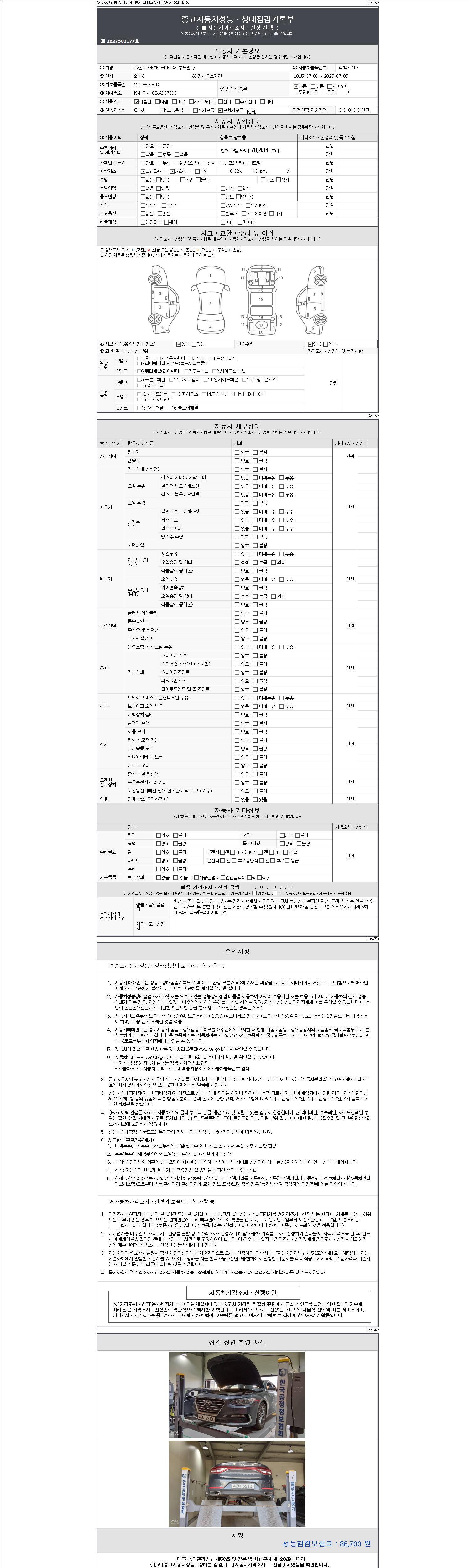 2. 차량 등록증이나 성능점검지 등을 상담자에게 요청및 확인하시고 사전에 미리 점검 하시기를 권유드립니다.