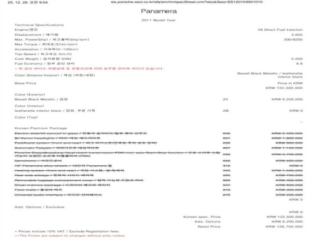 포르쉐 파나메라 파나메라 (09~16년) 3.6 2WD |