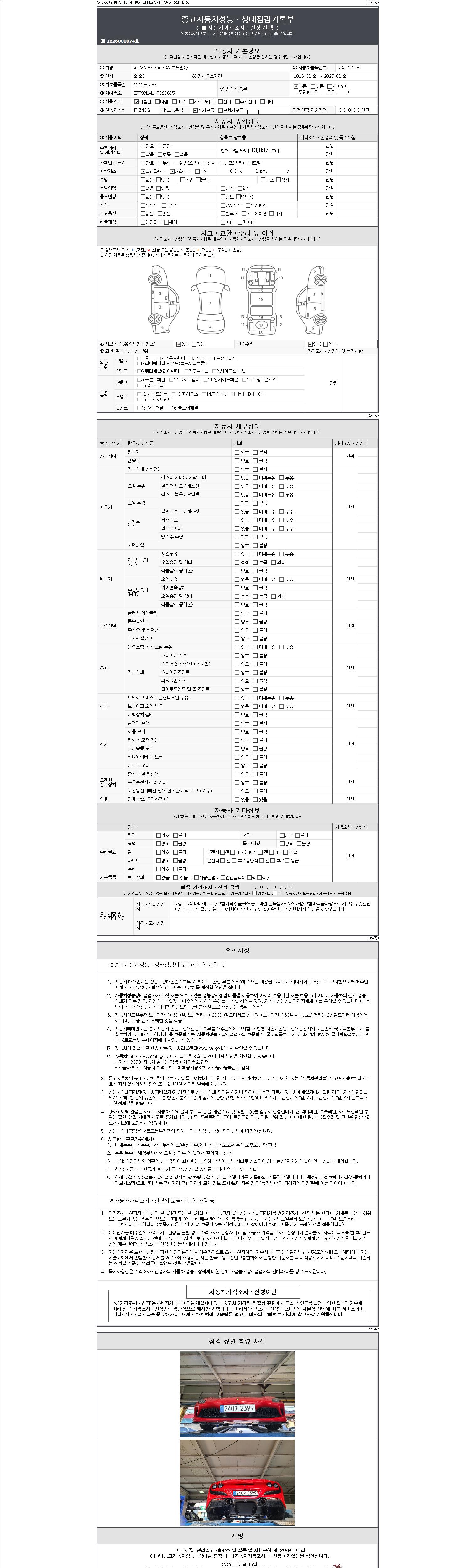 ※ 성능기록부가 안보일 경우 딜러에게 문의바랍니다.