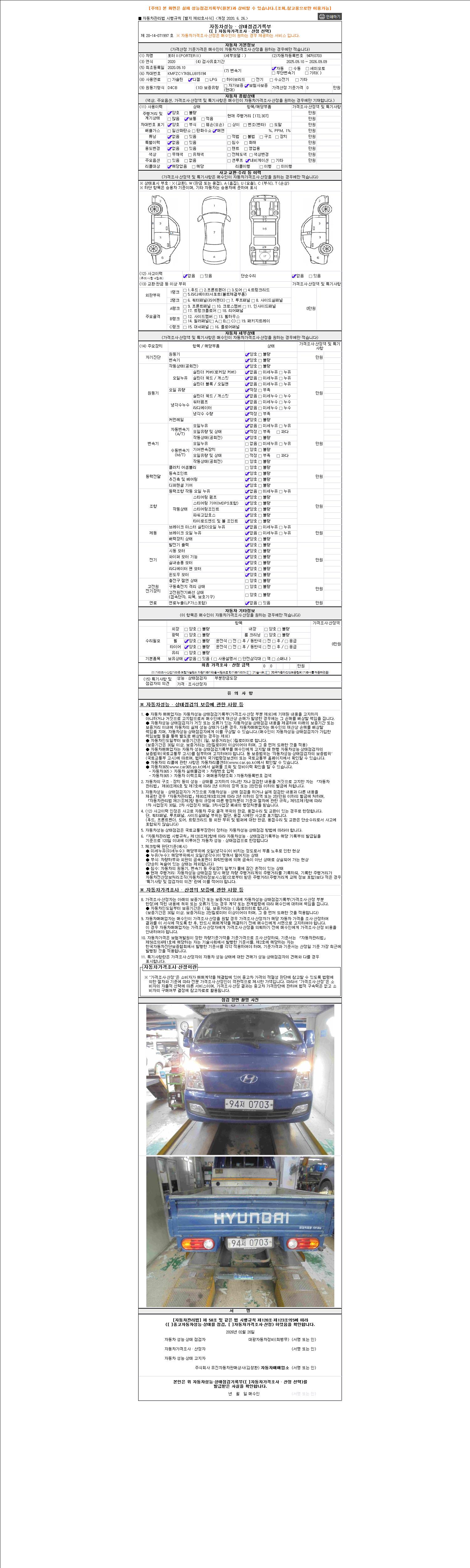 사고유무 성능기록부 참조 제시번호 제 2026021210 호