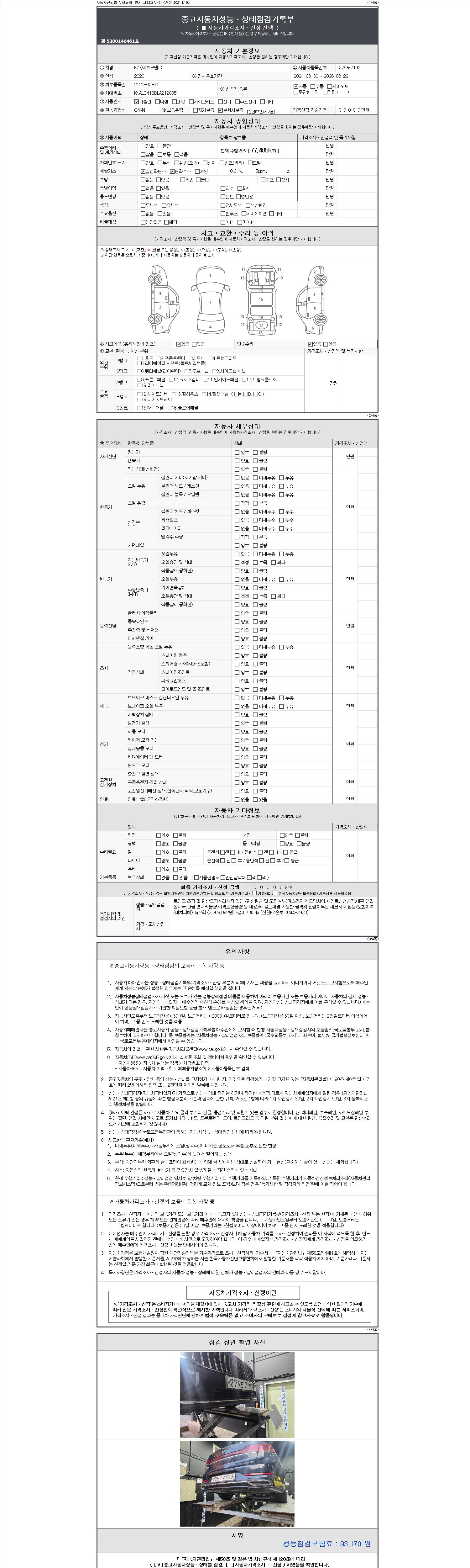 2. 차량 등록증이나 성능점검지 등을 상담자에게 요청및 확인하시고 사전에 미리 점검 하시기를 권유드립니다.