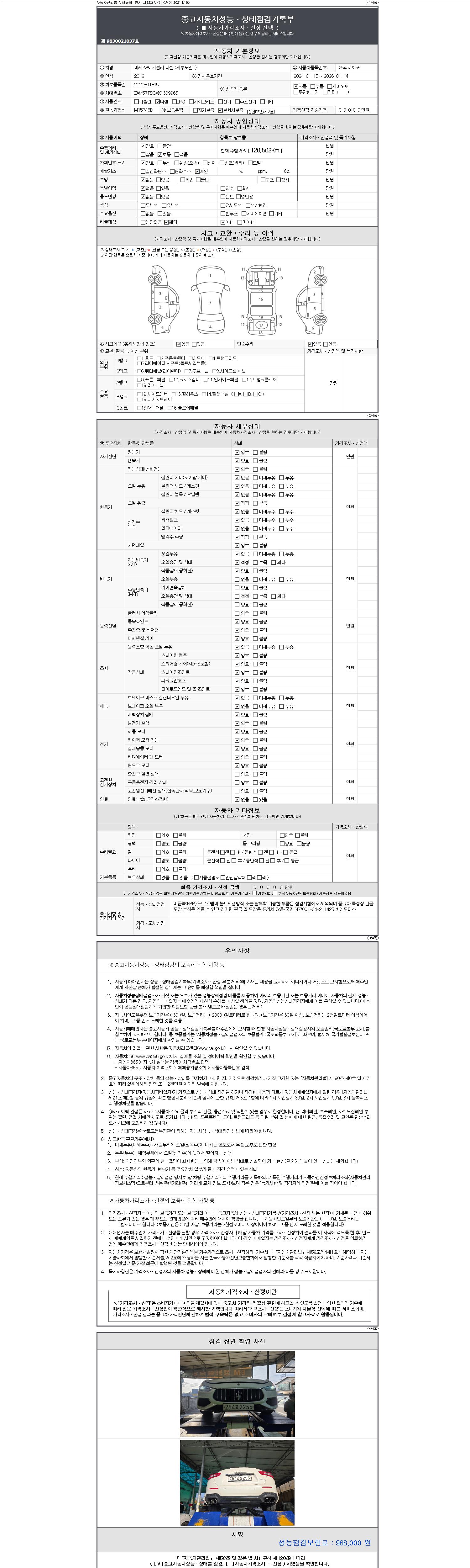 ※ 성능기록부가 안보일 경우 딜러에게 문의바랍니다.