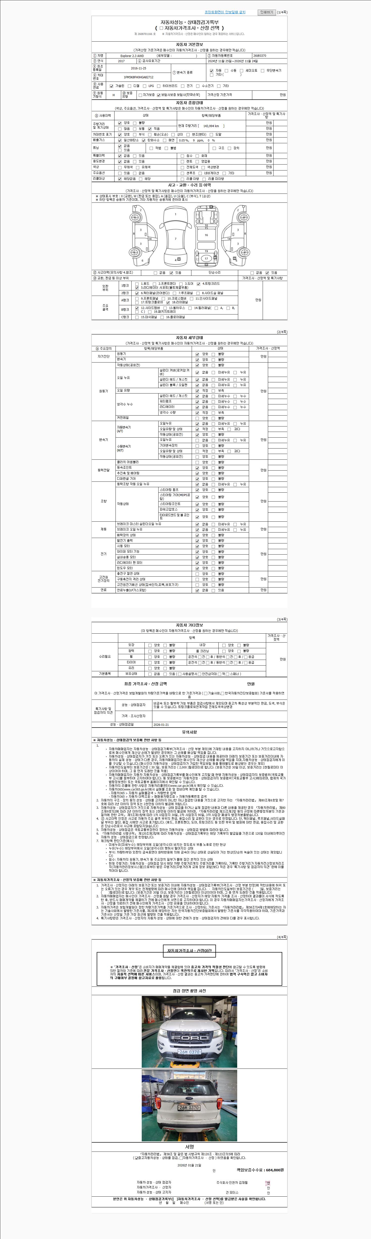 | 사고유무 | 성능기록부 참조 | 제시번호 | 제 2026004324 호 |