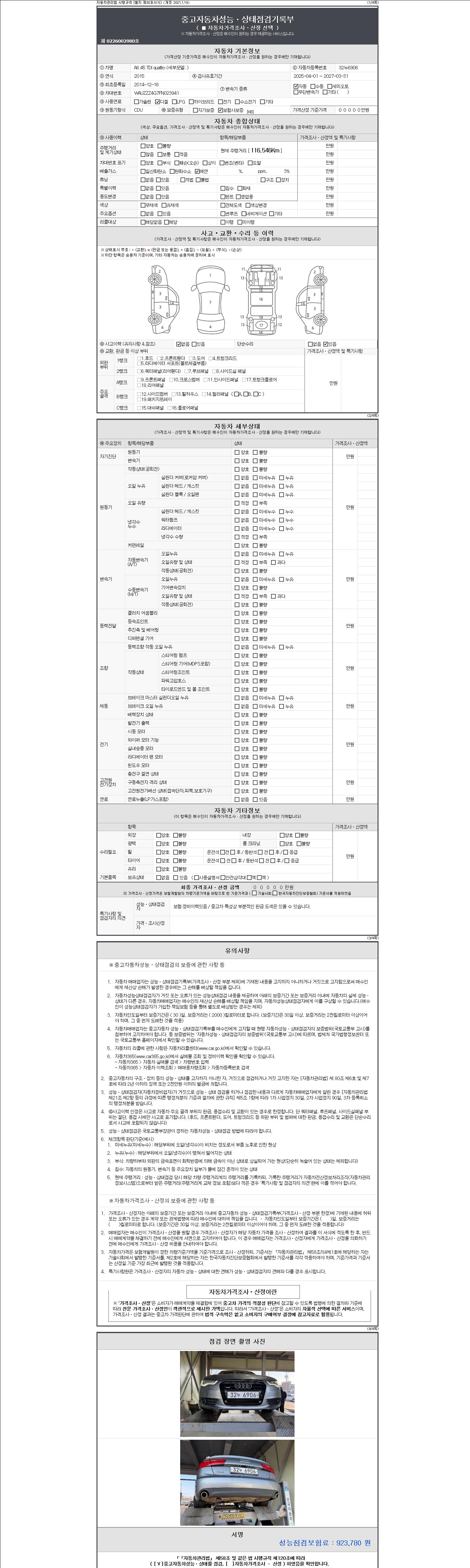 2. 차량 등록증이나 성능점검지 등을 상담자에게 요청및 확인하시고 사전에 미리 점검 하시기를 권유드립니다.