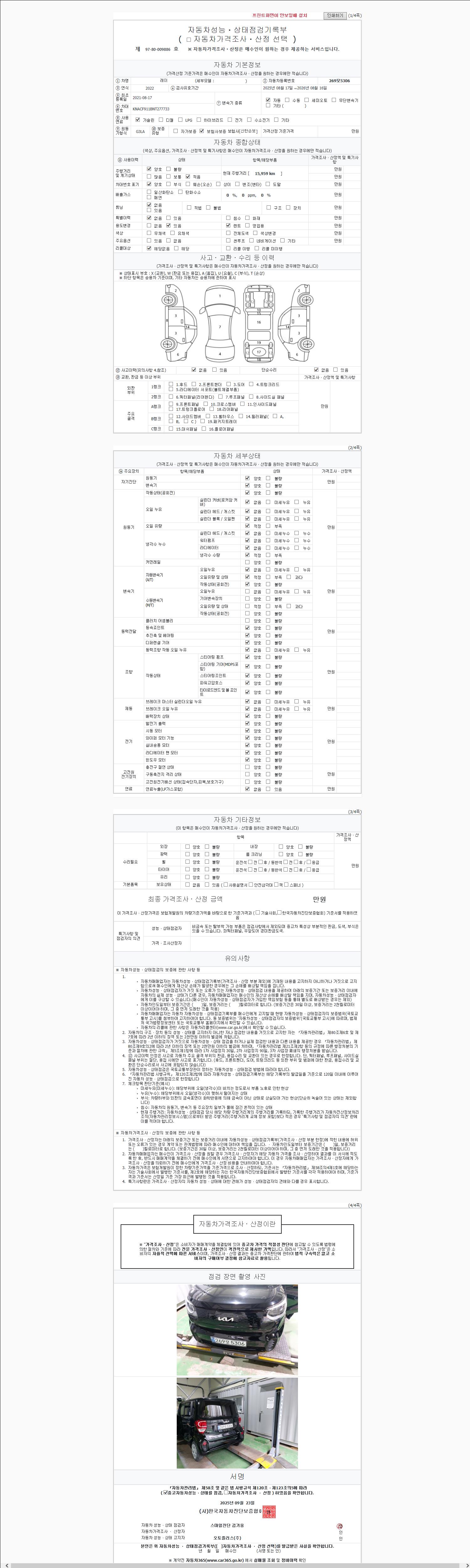 2. 차량 등록증이나 성능점검지 등을 상담자에게 요청및 확인하시고 사전에 미리 점검 하시기를 권유드립니다.