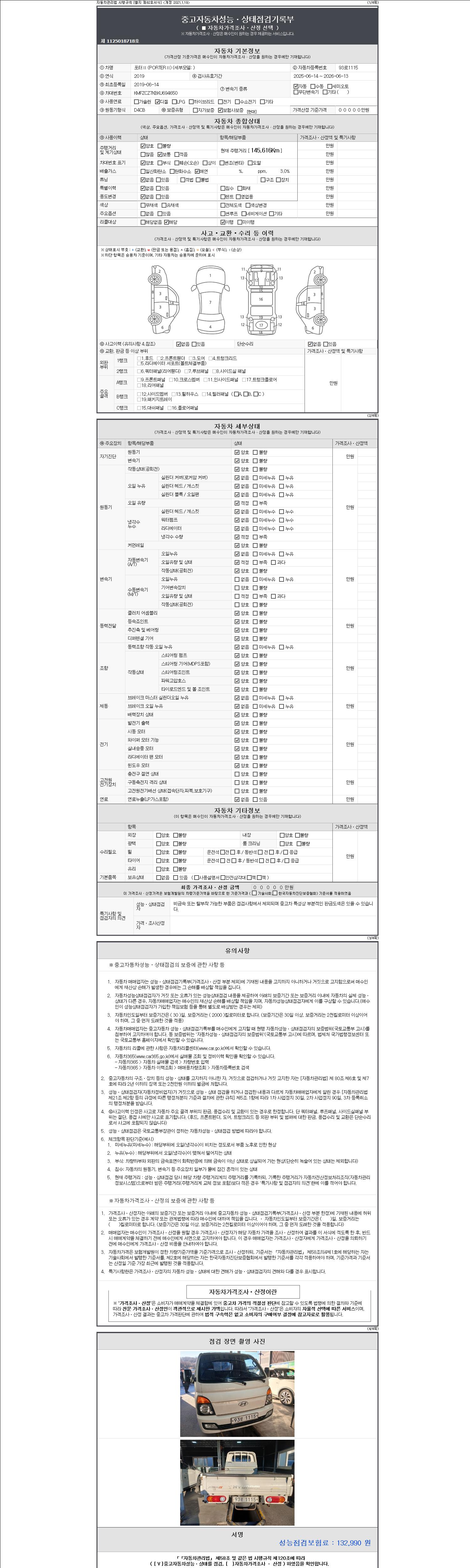 | 주행거리 | 145,616 km | 차량번호 | 93로1115 |