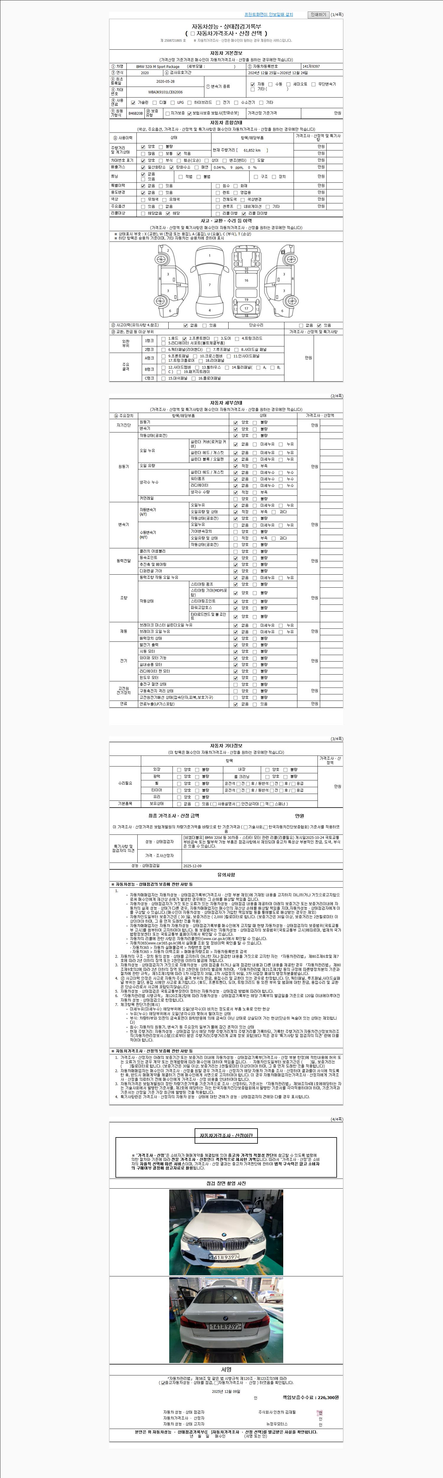 사고유무 성능기록부 참조 제시번호 제 2025068102 호