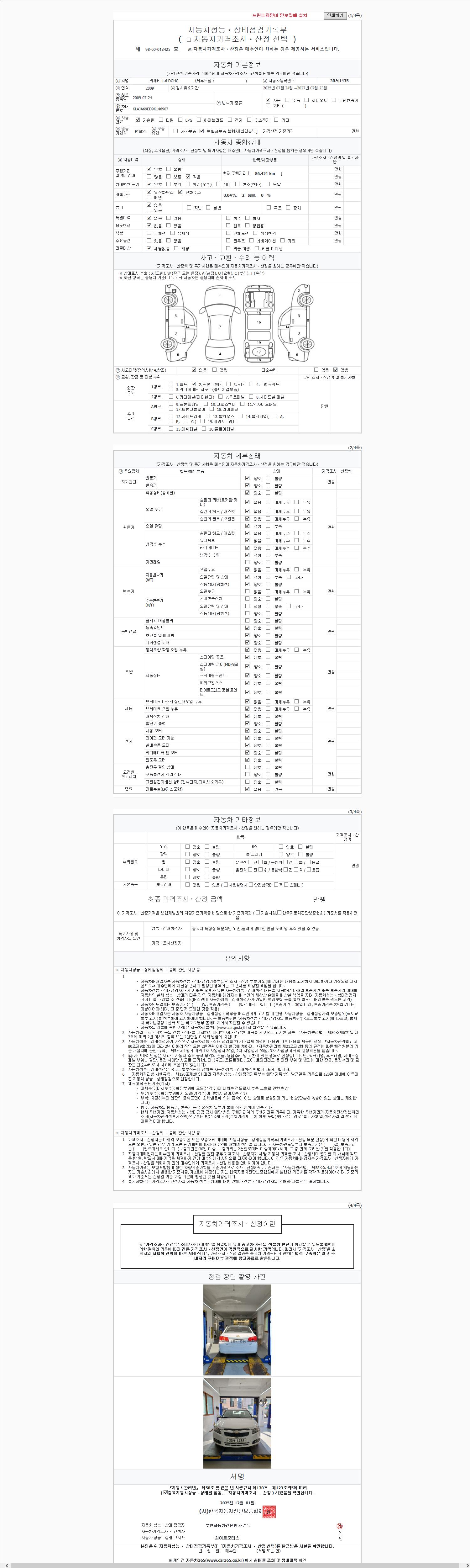 사고유무 성능기록부 참조 제시번호 제 2025224293 호