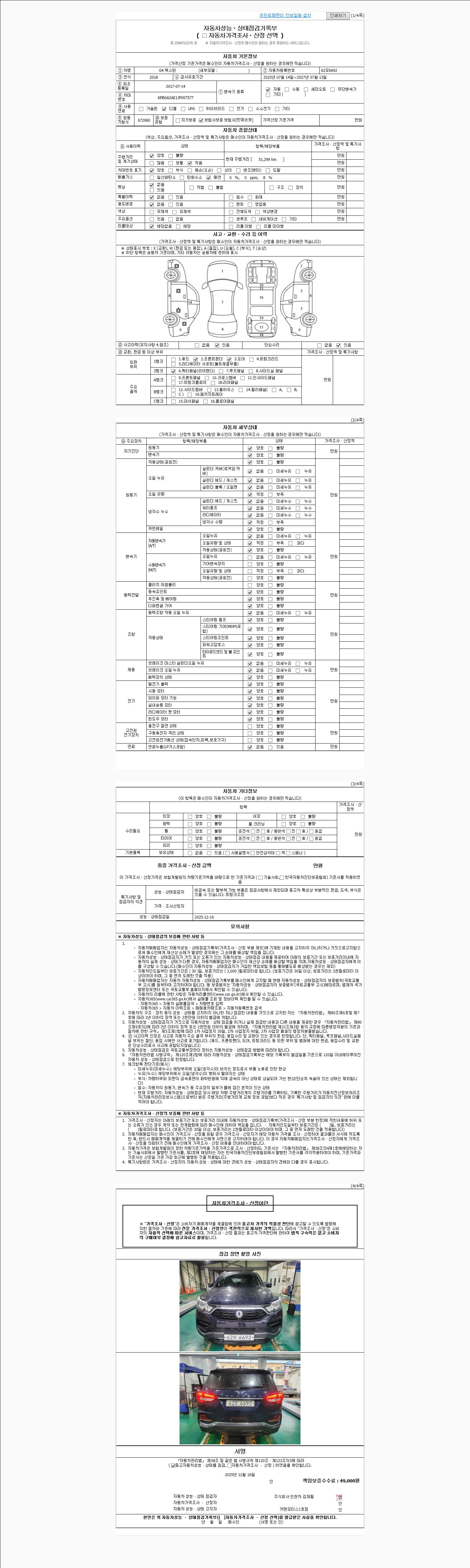2. 차량 등록증이나 성능점검지 등을 상담자에게 요청및 확인하시고 사전에 미리 점검 하시기를 권유드립니다.