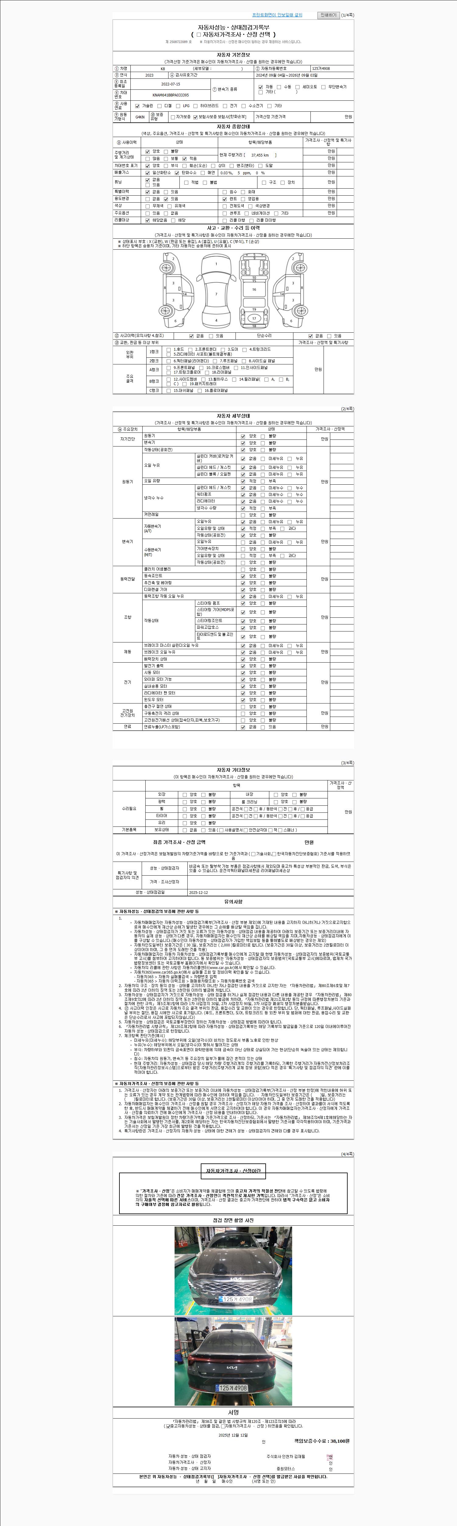 | 주행거리 | 37,455 km | 차량번호 | 125거4908 |