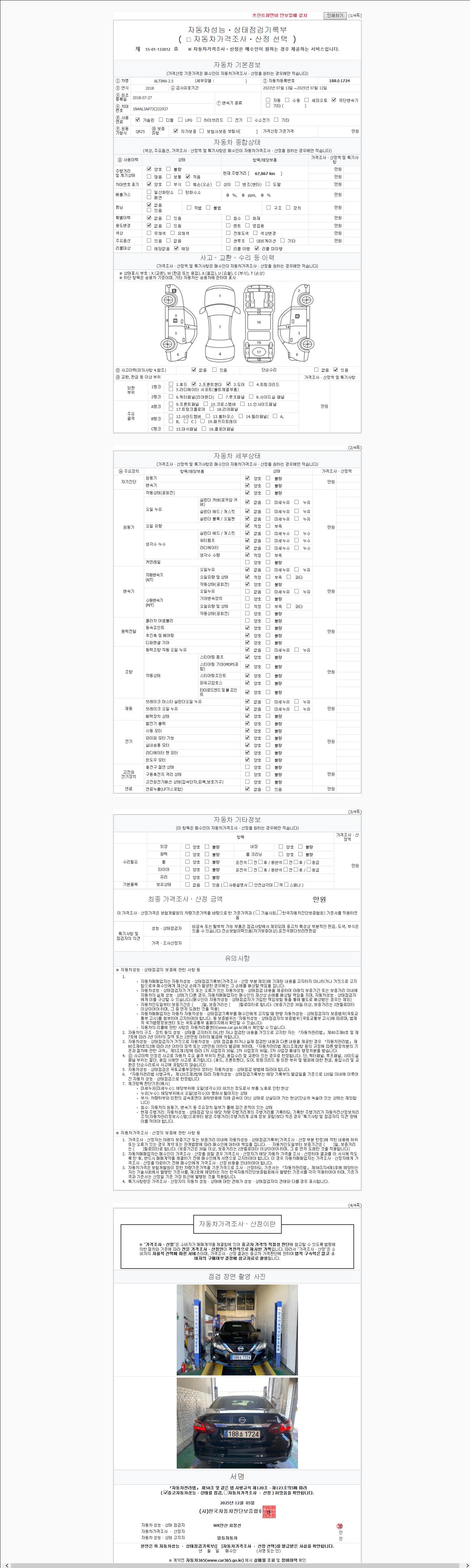 | 주행거리 | 67,866 km | 차량번호 | 188소1724 |
