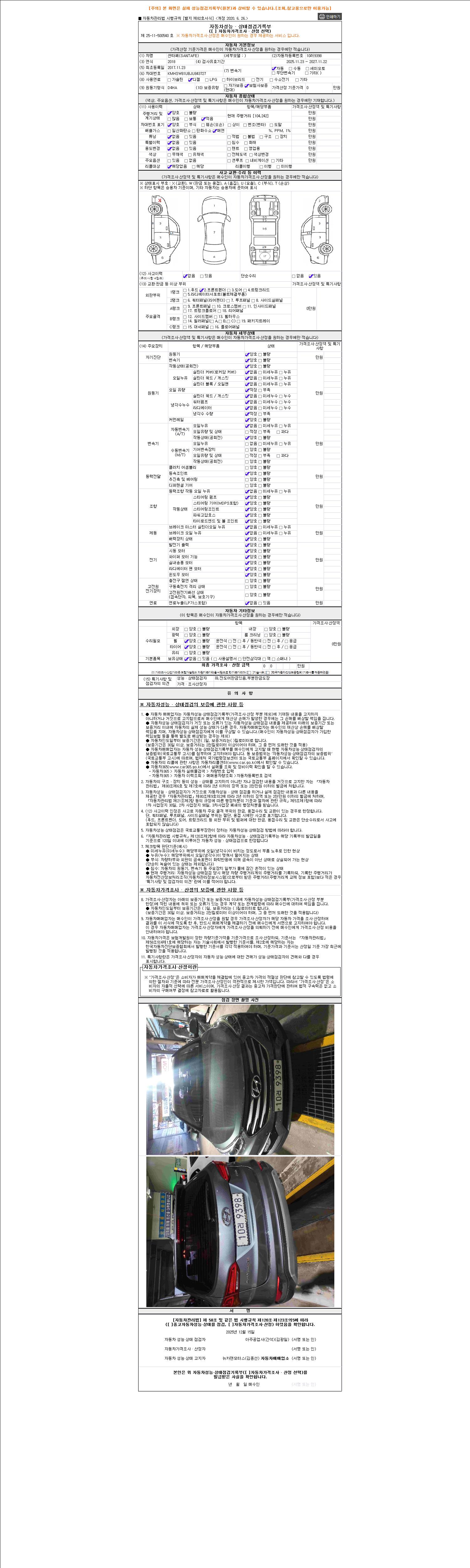 -중고자동차 매매업자를 통해 차량을 구입하실 경우 반드시 "중고자동차 성능, 상태점검 기록부"를 교뷰 받으셔야 하며, 매매업자는 반드시 의무 교부 하여야 압니다.