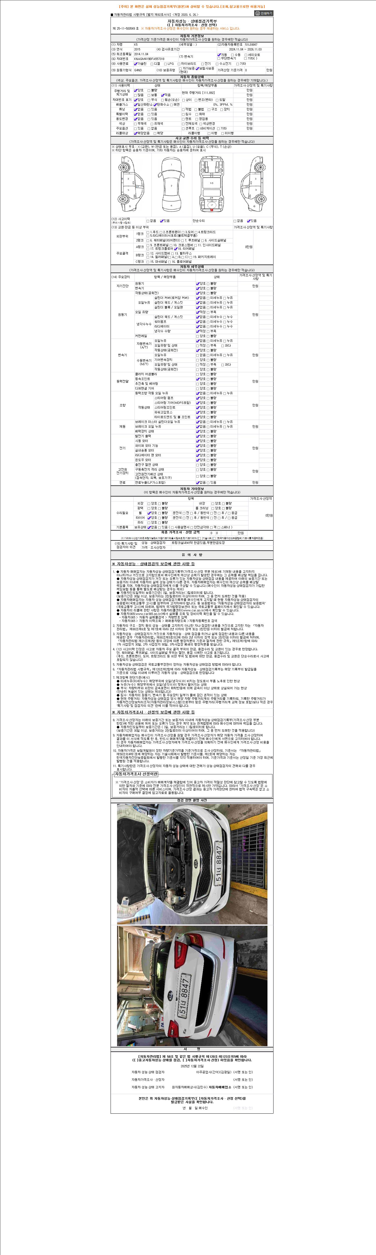 2. 차량 등록증이나 성능점검지 등을 상담자에게 요청및 확인하시고 사전에 미리 점검 하시기를 권유드립니다.