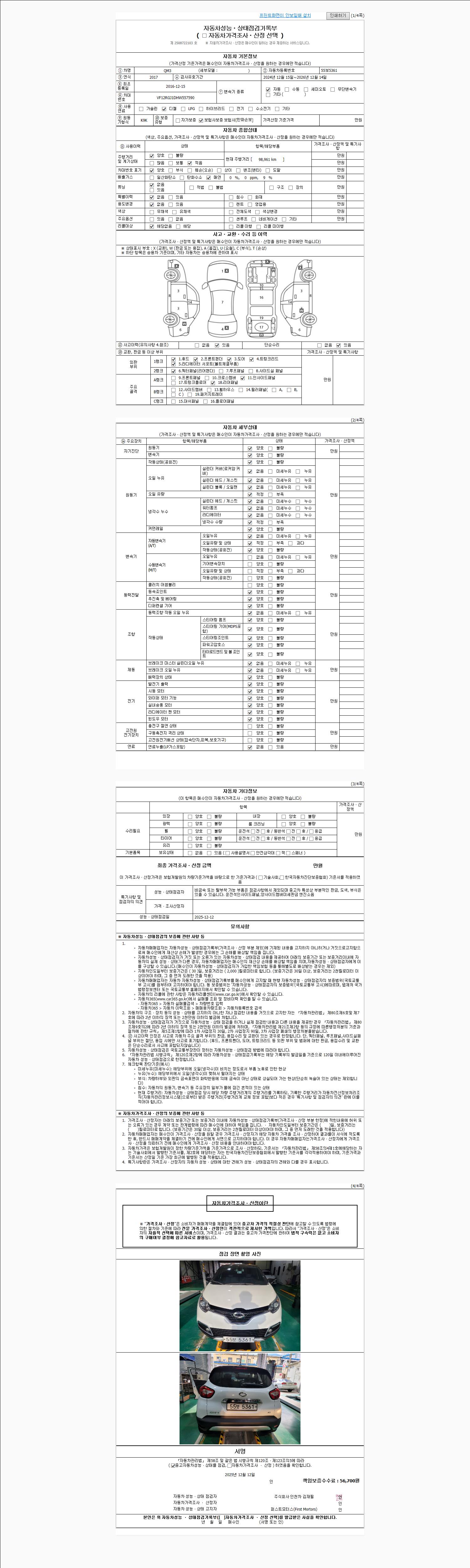 -중고자동차 매매업자를 통해 차량을 구입하실 경우 반드시 "중고자동차 성능, 상태점검 기록부"를 교뷰 받으셔야 하며, 매매업자는 반드시 의무 교부 하여야 압니다.