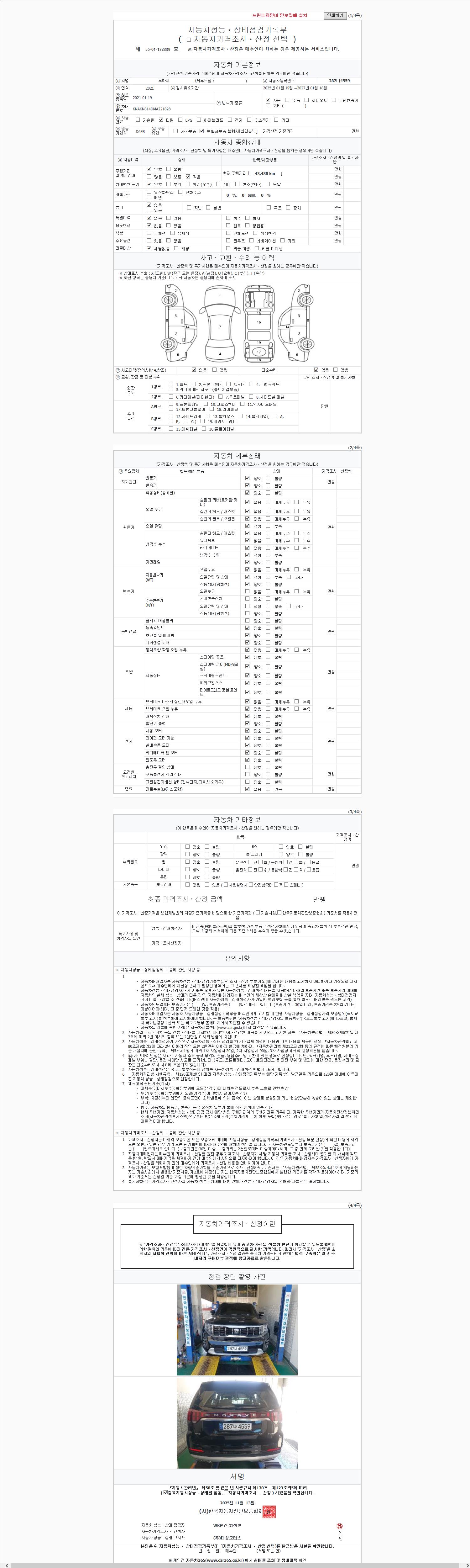 2. 차량 등록증이나 성능점검지 등을 상담자에게 요청및 확인하시고 사전에 미리 점검 하시기를 권유드립니다.