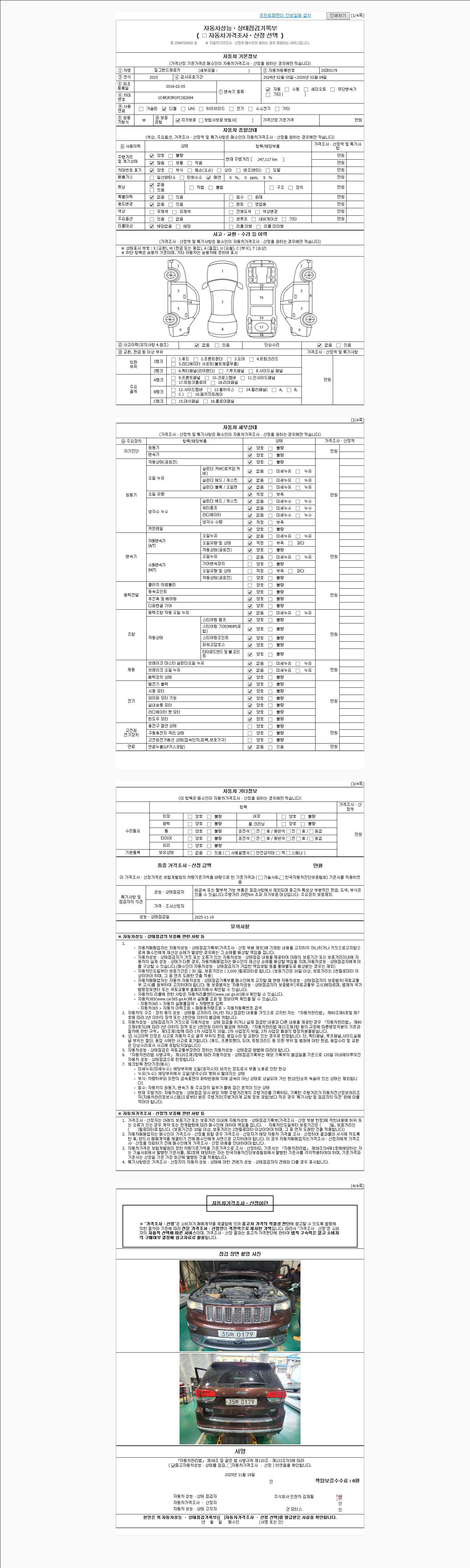 사고유무 성능기록부 참조 제시번호 제 2025063899 호
