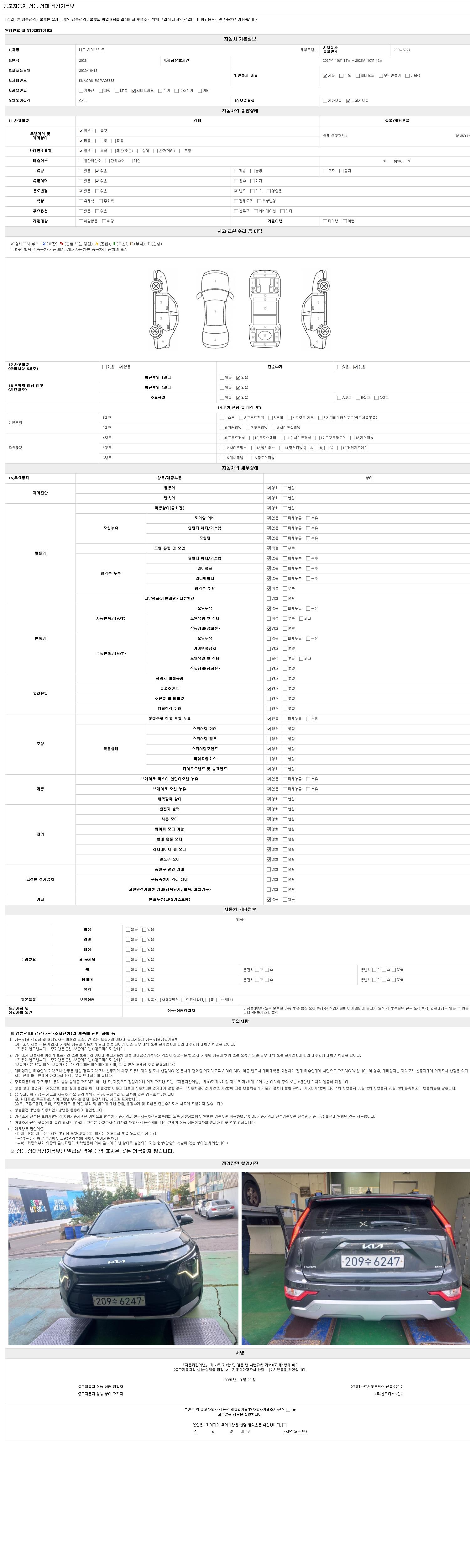 사고유무 성능기록부 참조 제시번호 제 2025034093 호
