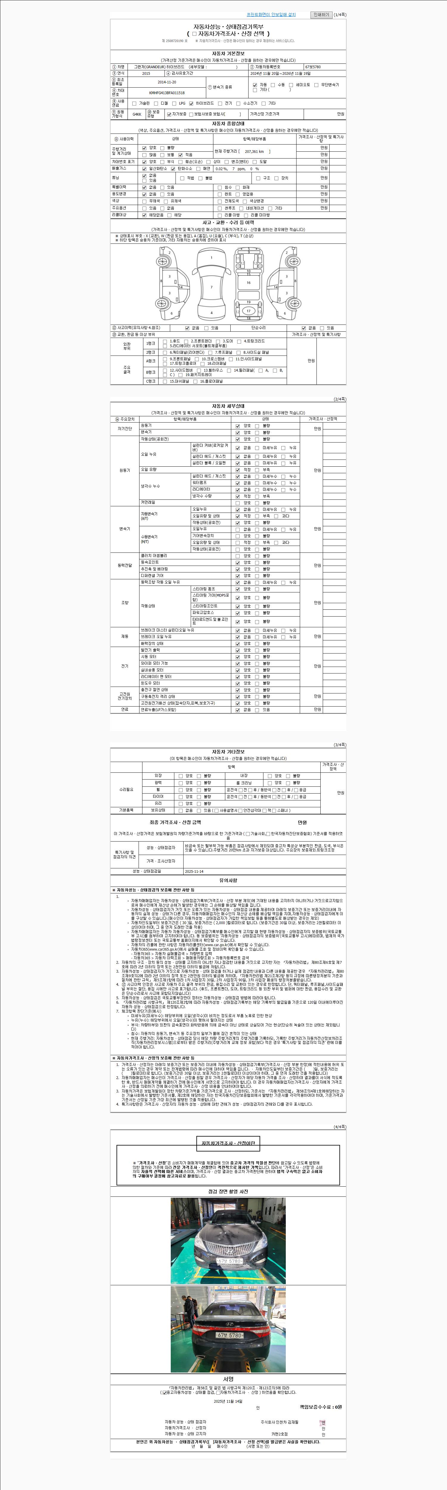 사고유무 성능기록부 참조 제시번호 제 2025062800 호