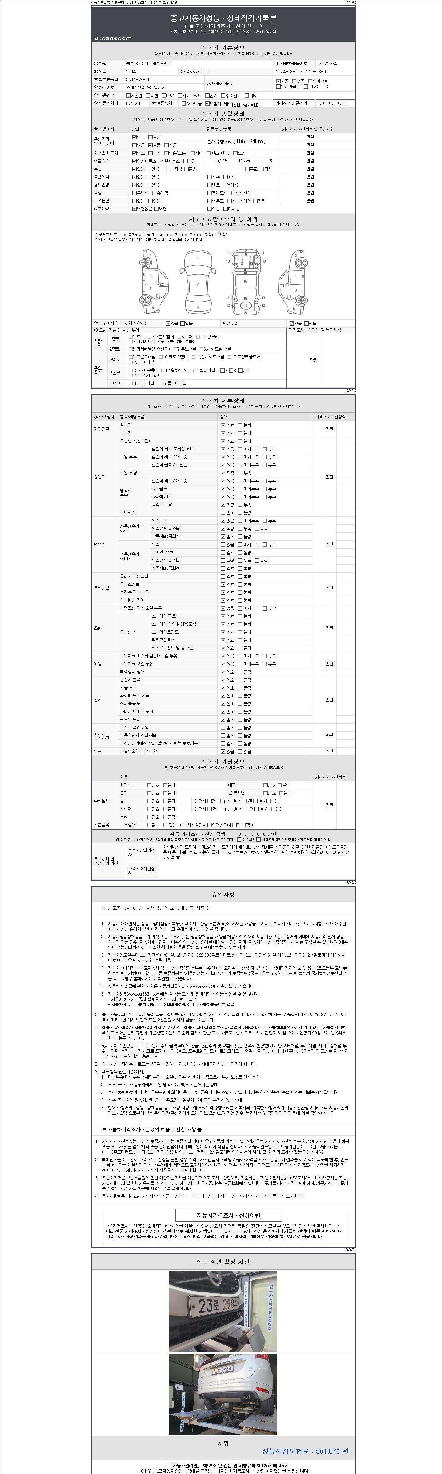 사고유무 성능기록부 참조 제시번호 제 2147483647 호