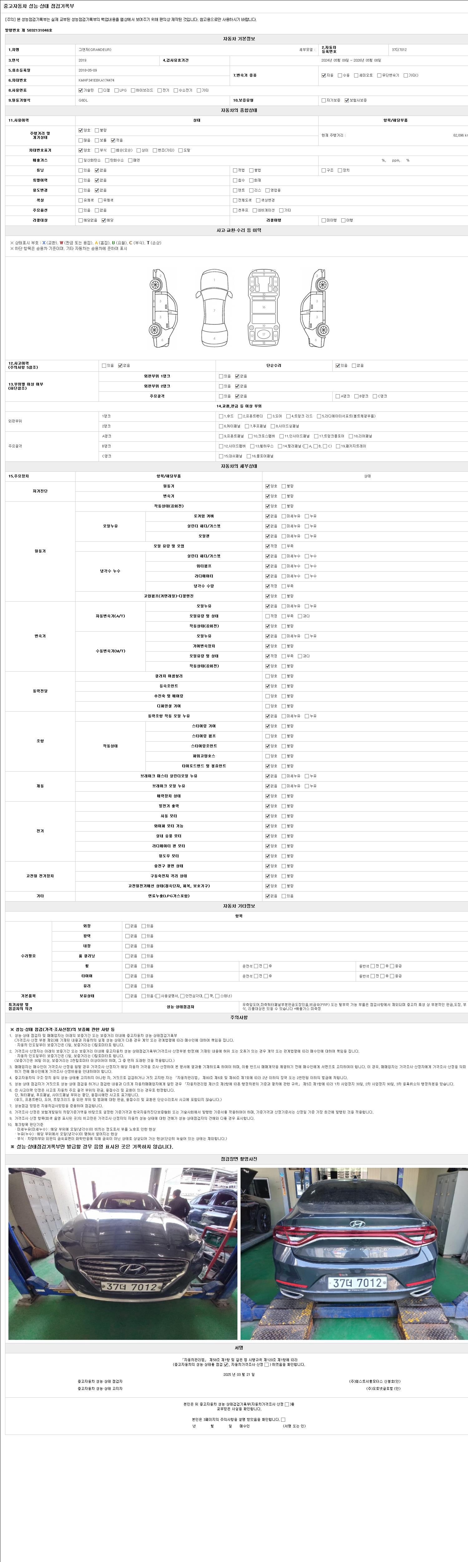 | 주행거리 | 62,096 km | 차량번호 | 37더7012 |