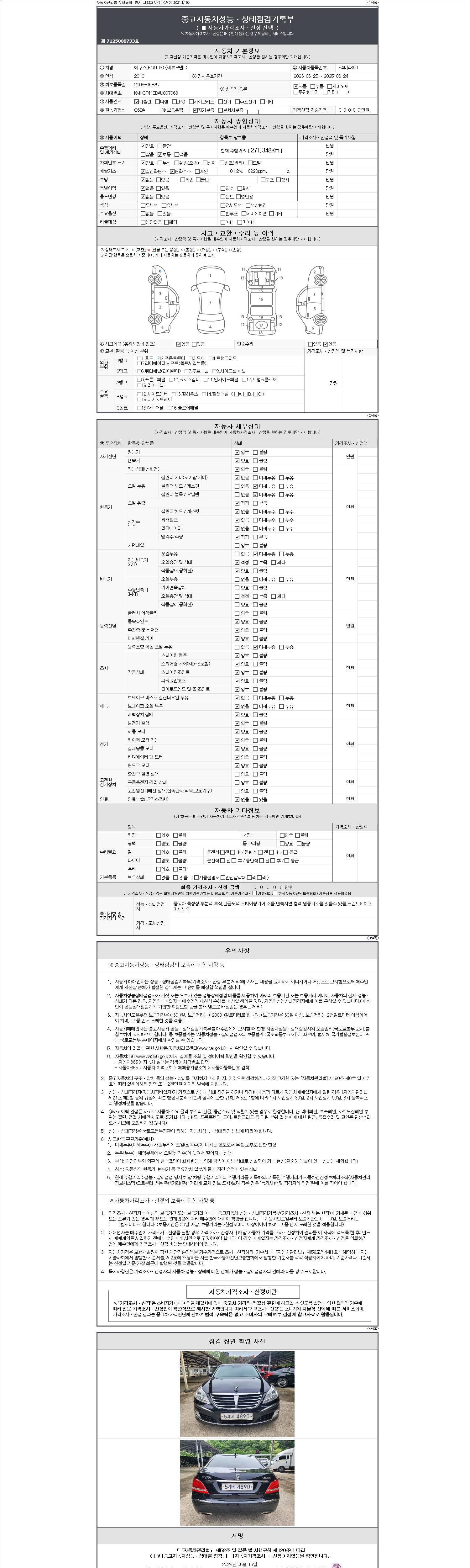 주행거리 271,348 km 차량번호 54버4890