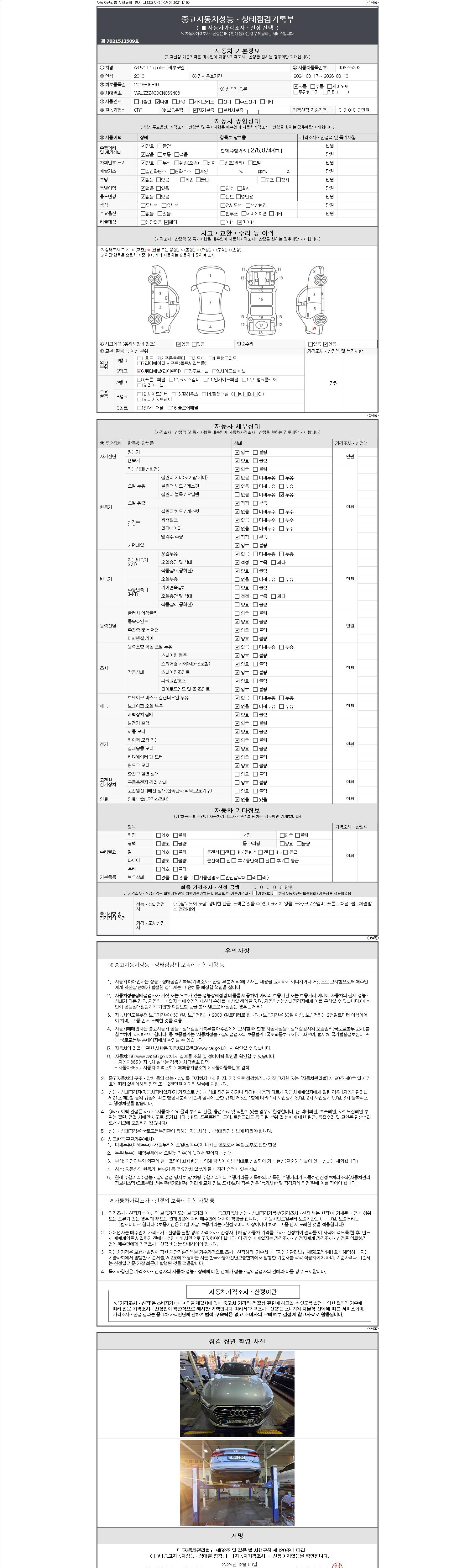 2. 차량 등록증이나 성능점검지 등을 상담자에게 요청및 확인하시고 사전에 미리 점검 하시기를 권유드립니다.