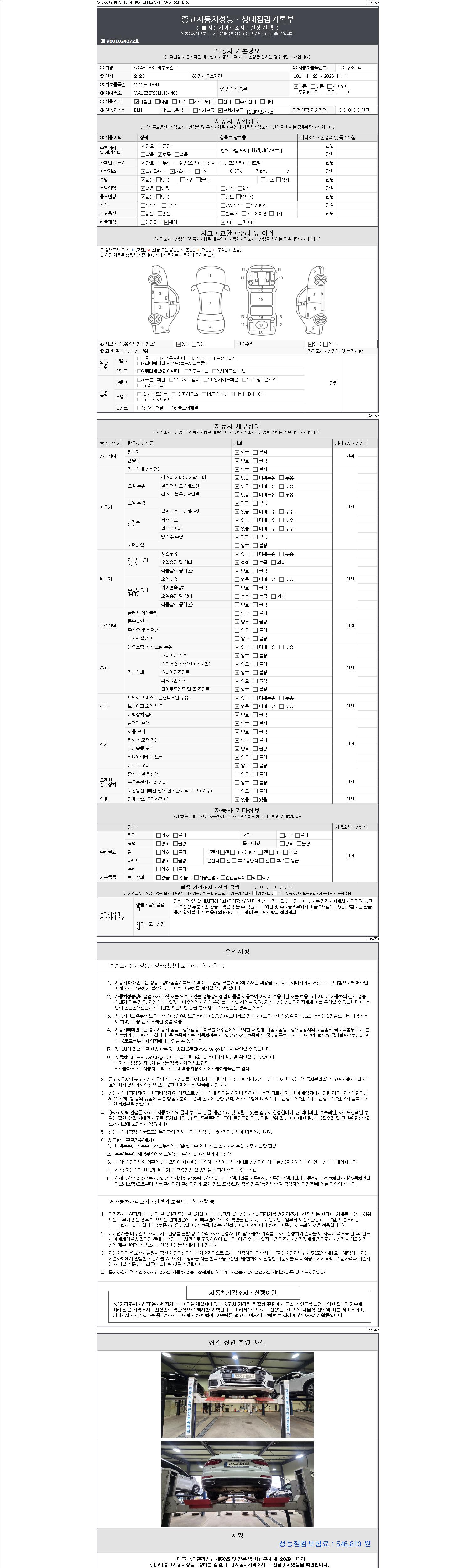 -중고자동차 매매업자를 통해 차량을 구입하실 경우 반드시 "중고자동차 성능, 상태점검 기록부"를 교뷰 받으셔야 하며, 매매업자는 반드시 의무 교부 하여야 압니다.