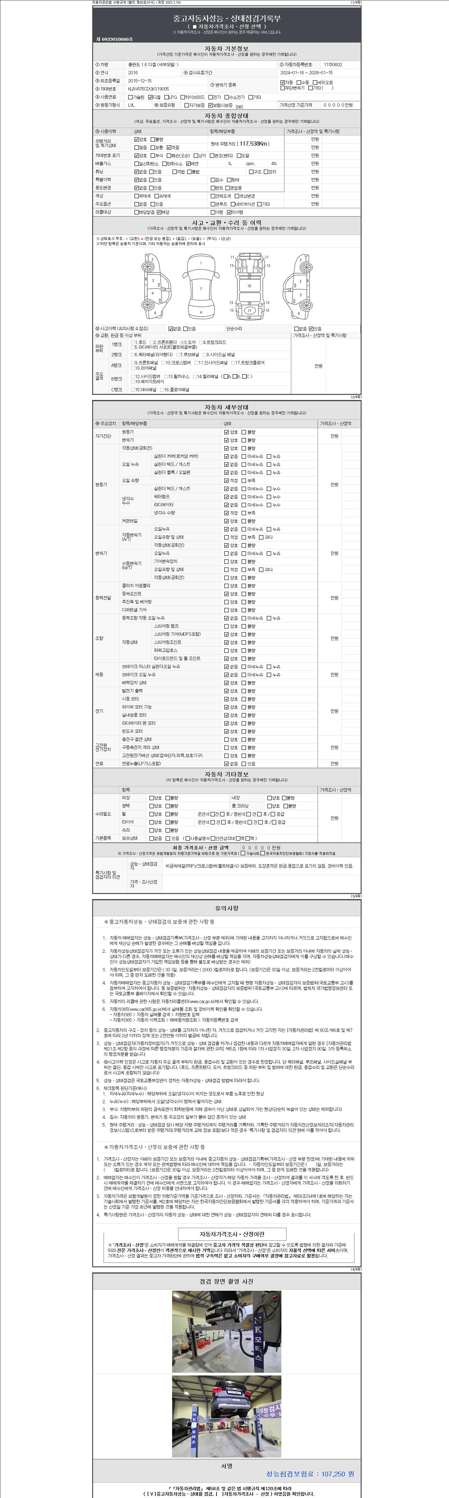 -중고자동차 매매업자를 통해 차량을 구입하실 경우 반드시 "중고자동차 성능, 상태점검 기록부"를 교뷰 받으셔야 하며, 매매업자는 반드시 의무 교부 하여야 압니다.