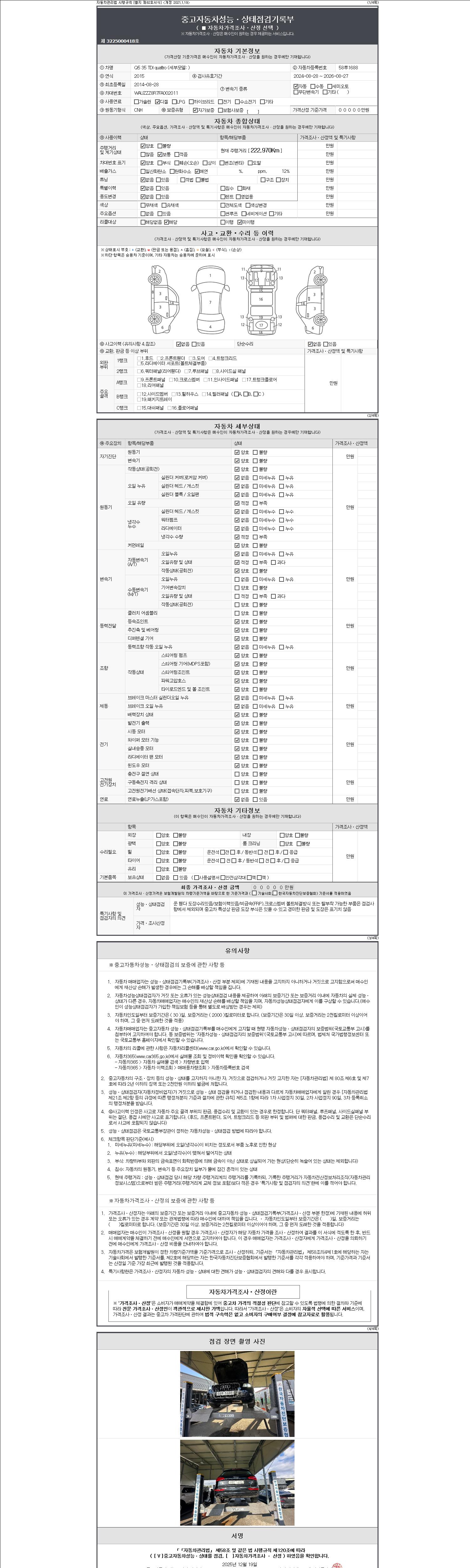 2. 차량 등록증이나 성능점검지 등을 상담자에게 요청및 확인하시고 사전에 미리 점검 하시기를 권유드립니다.