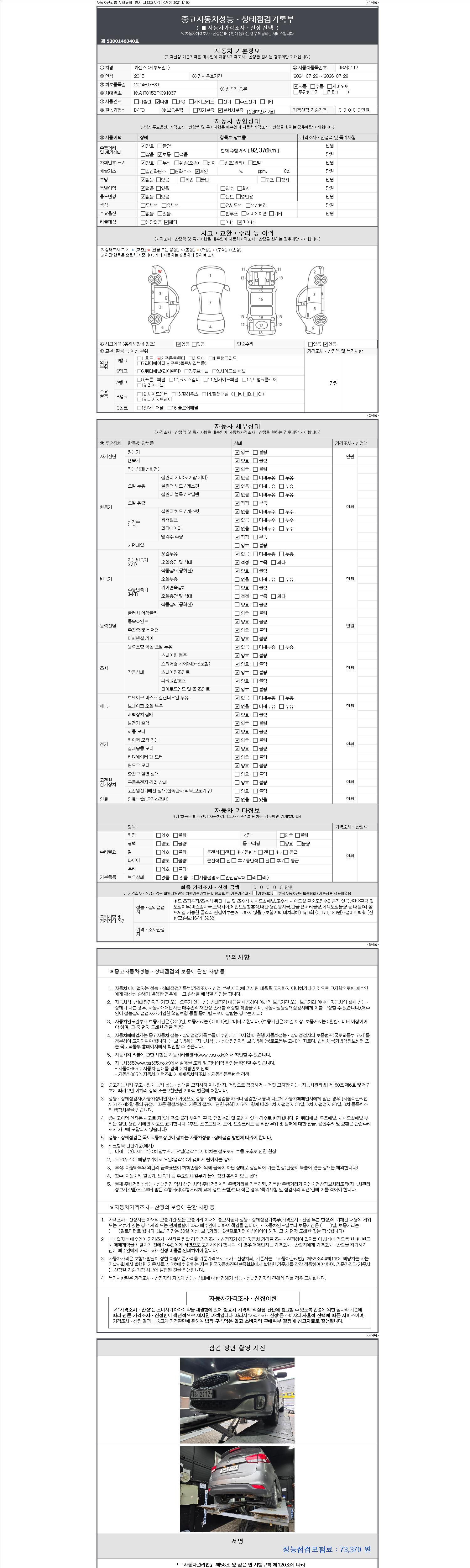 -중고자동차 매매업자를 통해 차량을 구입하실 경우 반드시 "중고자동차 성능, 상태점검 기록부"를 교뷰 받으셔야 하며, 매매업자는 반드시 의무 교부 하여야 압니다.