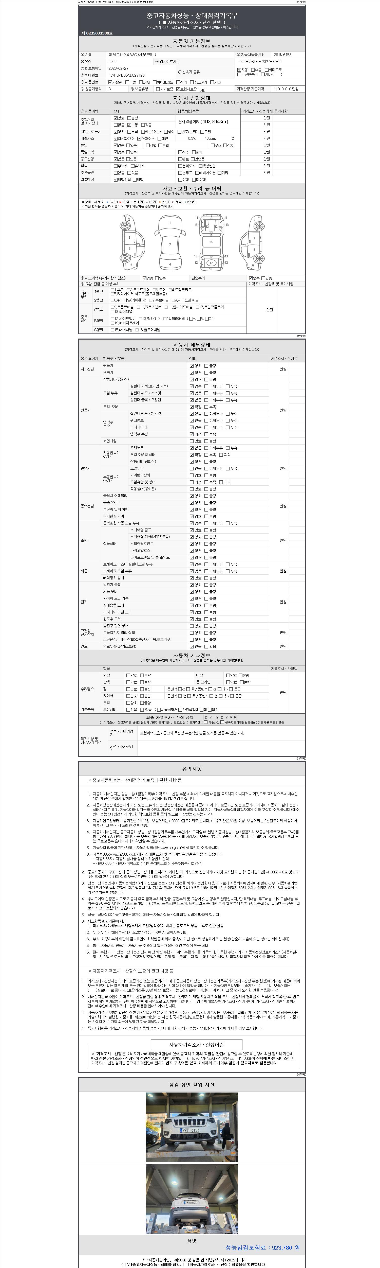 2. 차량 등록증이나 성능점검지 등을 상담자에게 요청및 확인하시고 사전에 미리 점검 하시기를 권유드립니다.