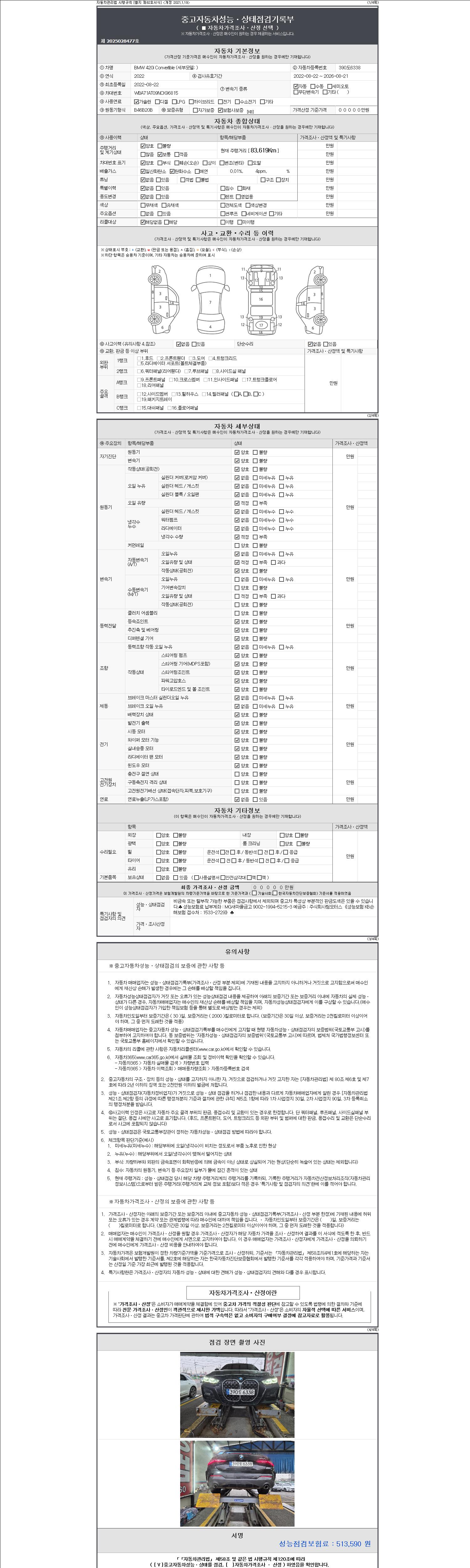 -중고자동차 매매업자를 통해 차량을 구입하실 경우 반드시 "중고자동차 성능, 상태점검 기록부"를 교뷰 받으셔야 하며, 매매업자는 반드시 의무 교부 하여야 압니다.