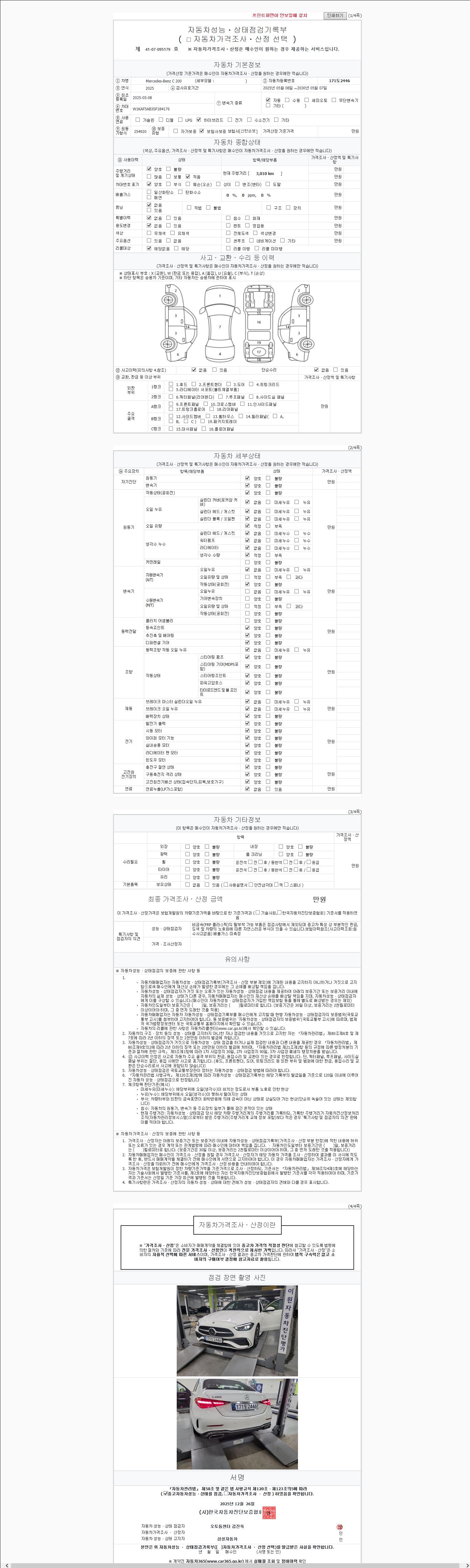 사고유무 성능기록부 참조 제시번호 제 2147483647 호