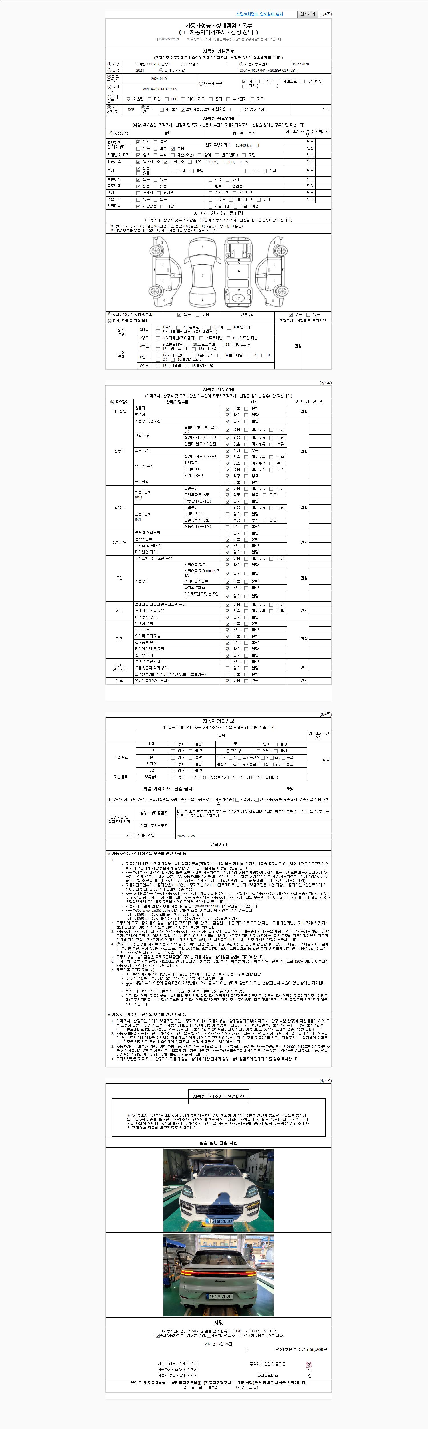 사고유무 성능기록부 참조 제시번호 제 2025071551 호