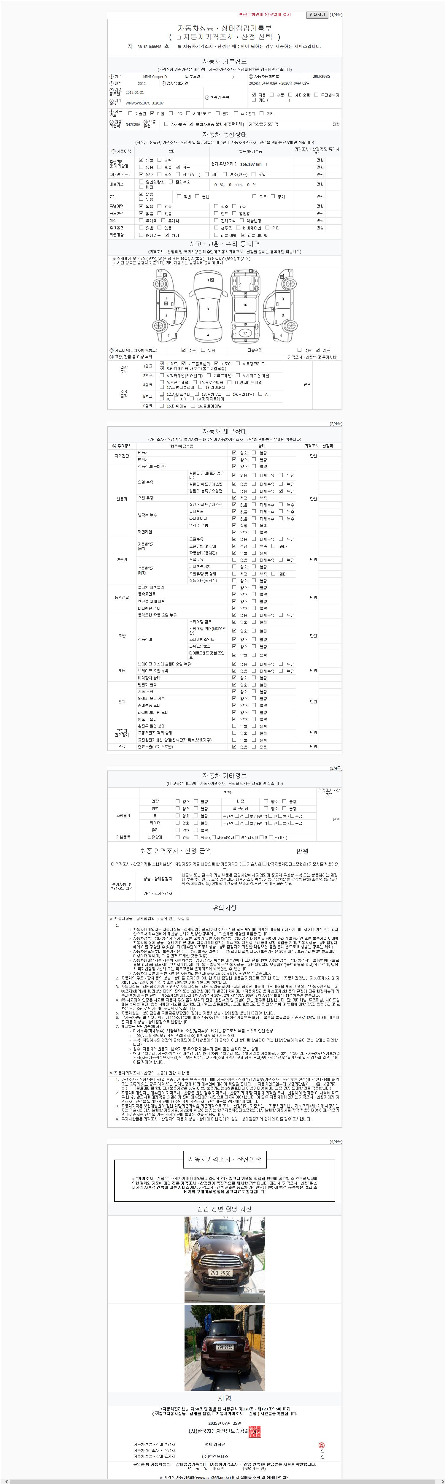 2. 차량 등록증이나 성능점검지 등을 상담자에게 요청및 확인하시고 사전에 미리 점검 하시기를 권유드립니다.