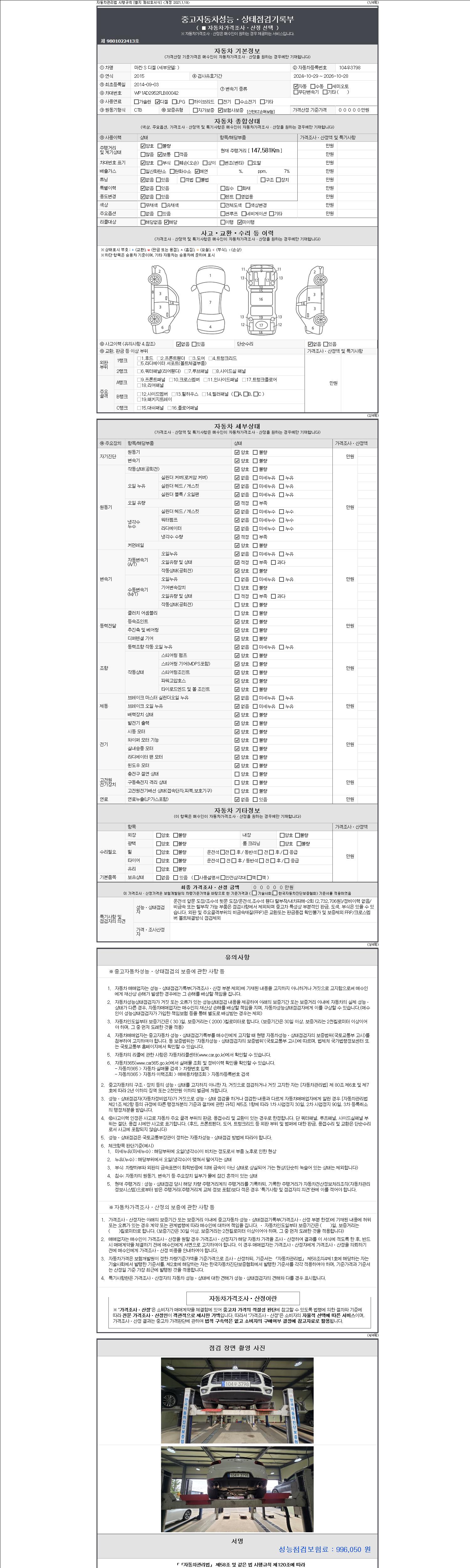 2. 차량 등록증이나 성능점검지 등을 상담자에게 요청및 확인하시고 사전에 미리 점검 하시기를 권유드립니다.