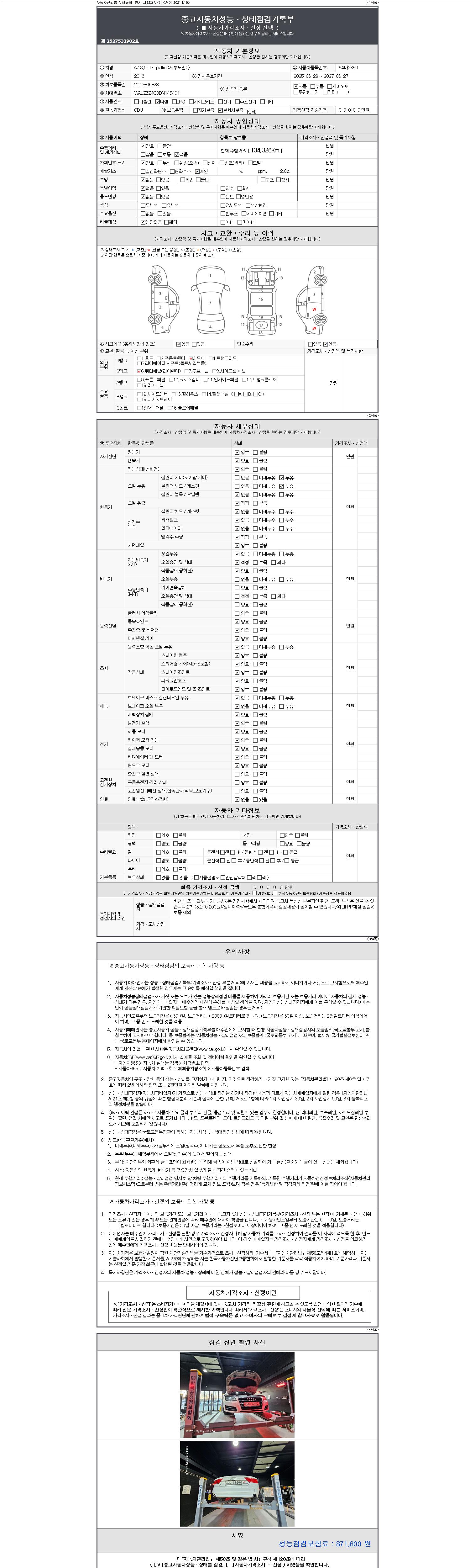 -중고자동차 매매업자를 통해 차량을 구입하실 경우 반드시 "중고자동차 성능, 상태점검 기록부"를 교뷰 받으셔야 하며, 매매업자는 반드시 의무 교부 하여야 압니다.