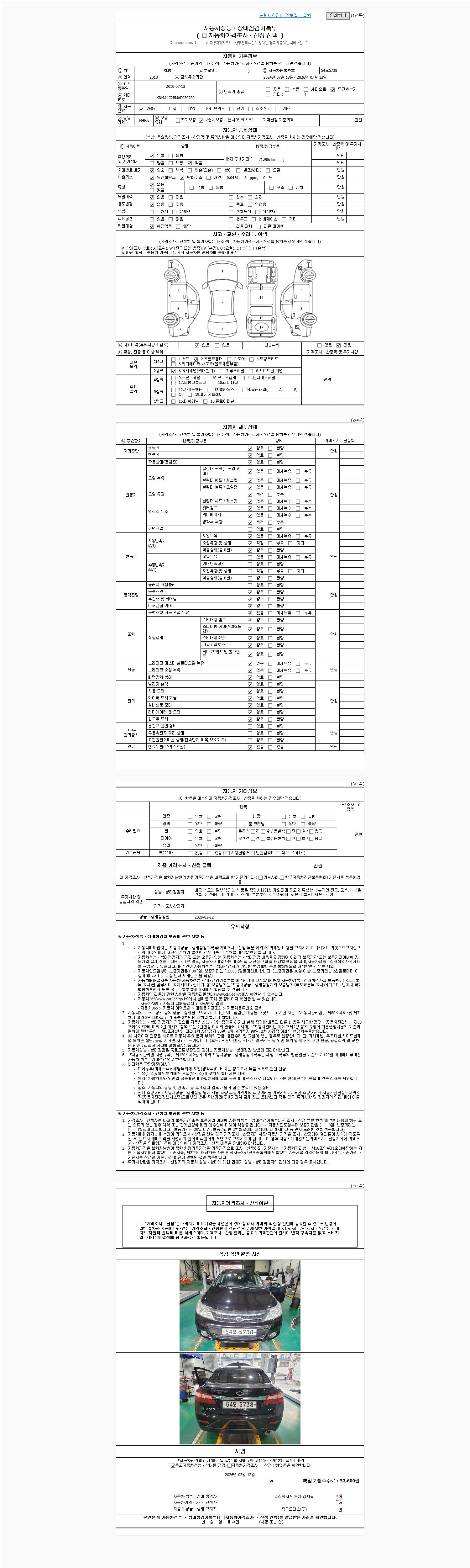| 주행거리 | 71,998 km | 차량번호 | 54모5738 |