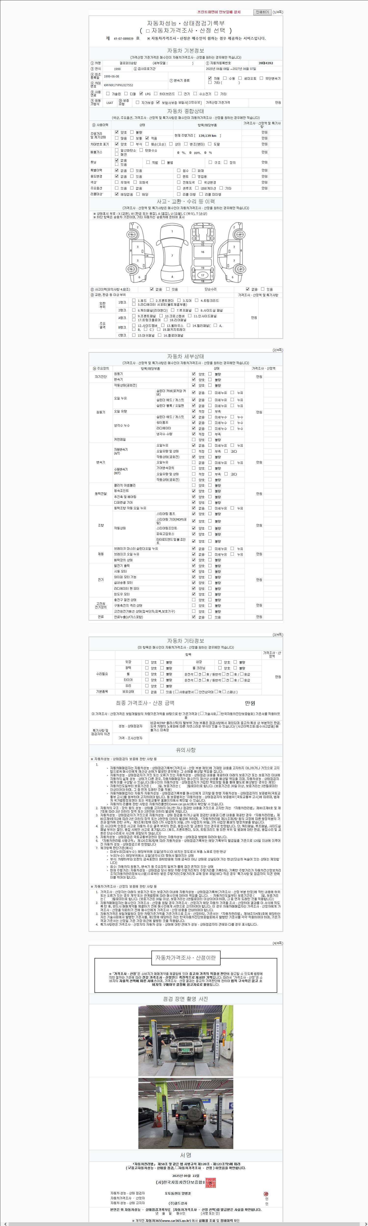 2. 차량 등록증이나 성능점검지 등을 상담자에게 요청및 확인하시고 사전에 미리 점검 하시기를 권유드립니다.