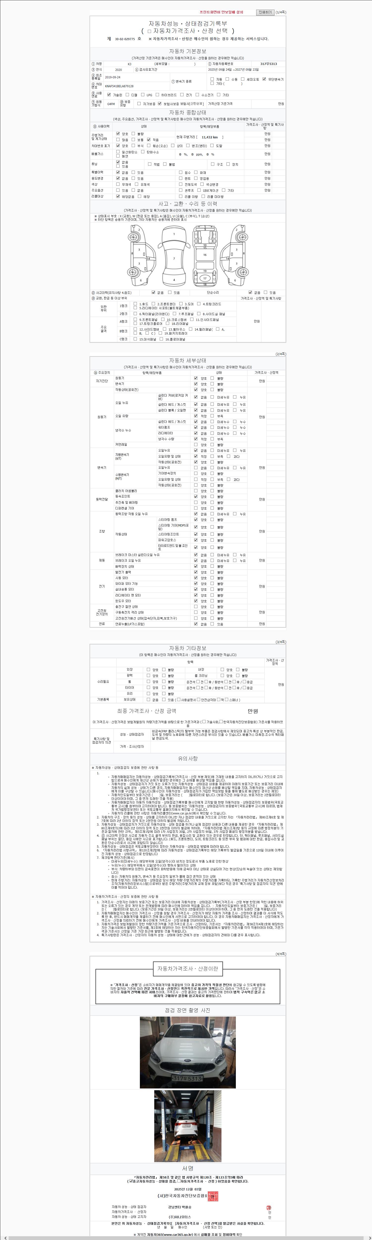 2. 차량 등록증이나 성능점검지 등을 상담자에게 요청및 확인하시고 사전에 미리 점검 하시기를 권유드립니다.
