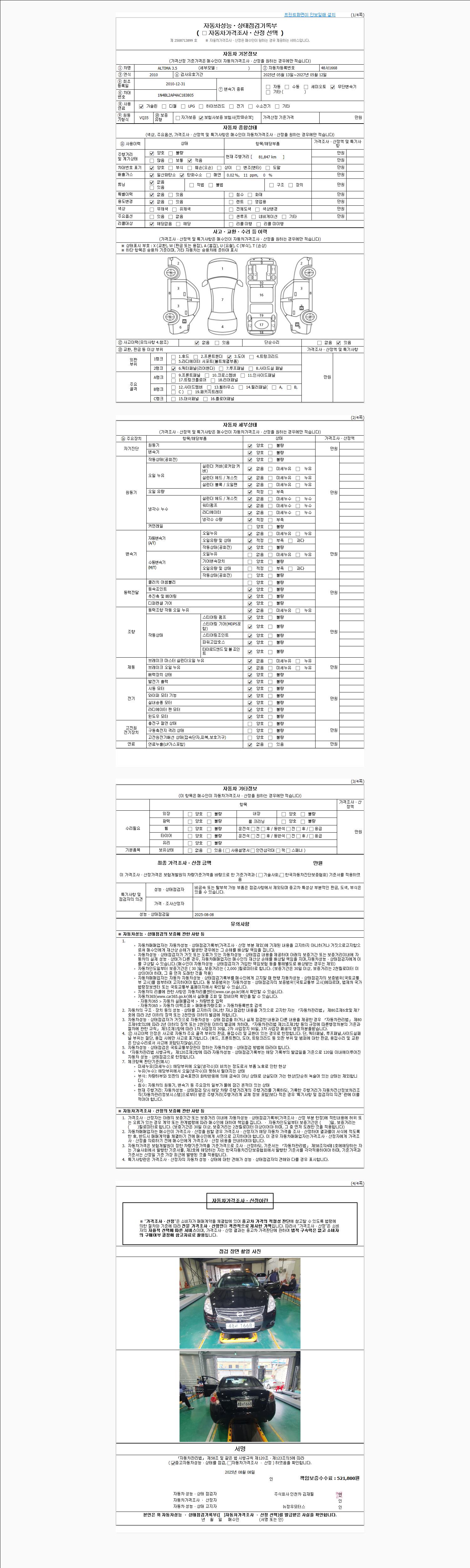 -중고자동차 매매업자를 통해 차량을 구입하실 경우 반드시 "중고자동차 성능, 상태점검 기록부"를 교뷰 받으셔야 하며, 매매업자는 반드시 의무 교부 하여야 압니다.