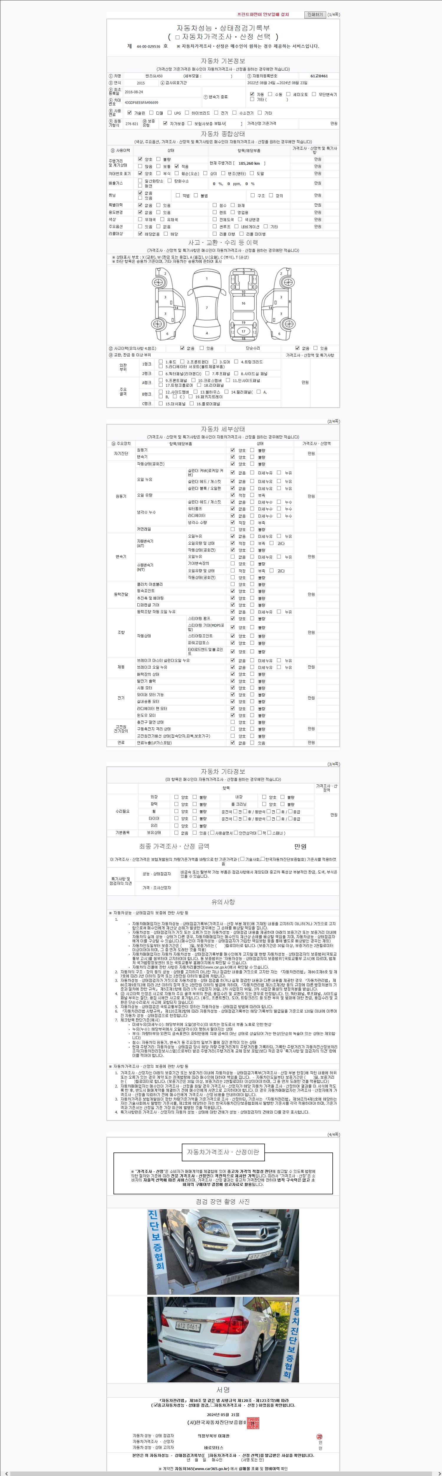 사고유무 성능기록부 참조 제시번호 제 2024092117 호