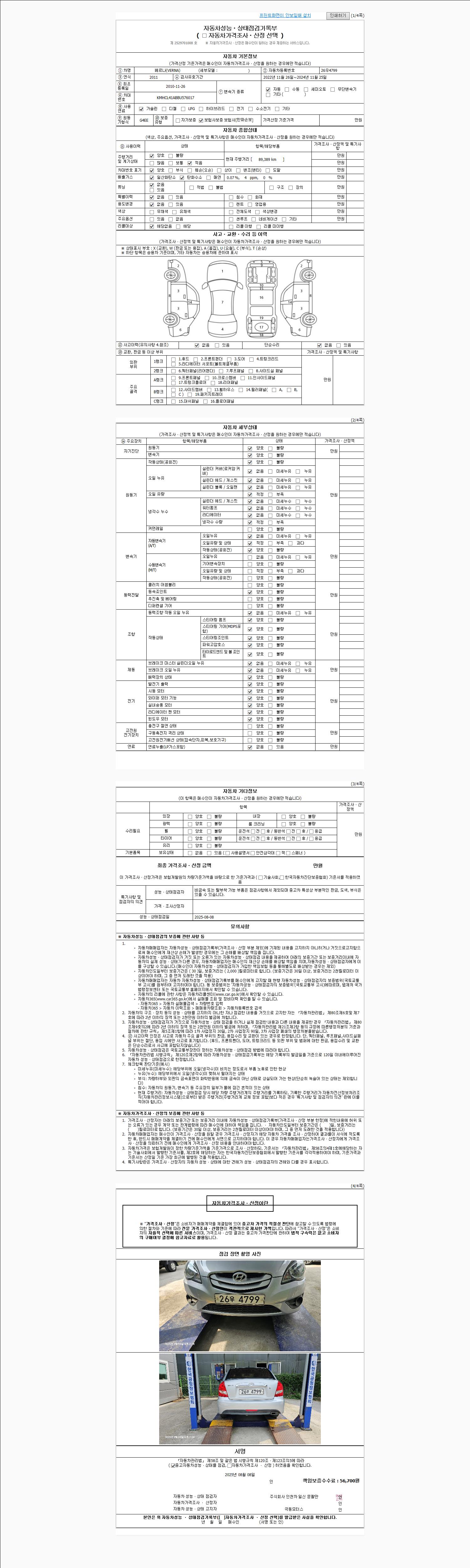 2. 차량 등록증이나 성능점검지 등을 상담자에게 요청및 확인하시고 사전에 미리 점검 하시기를 권유드립니다.